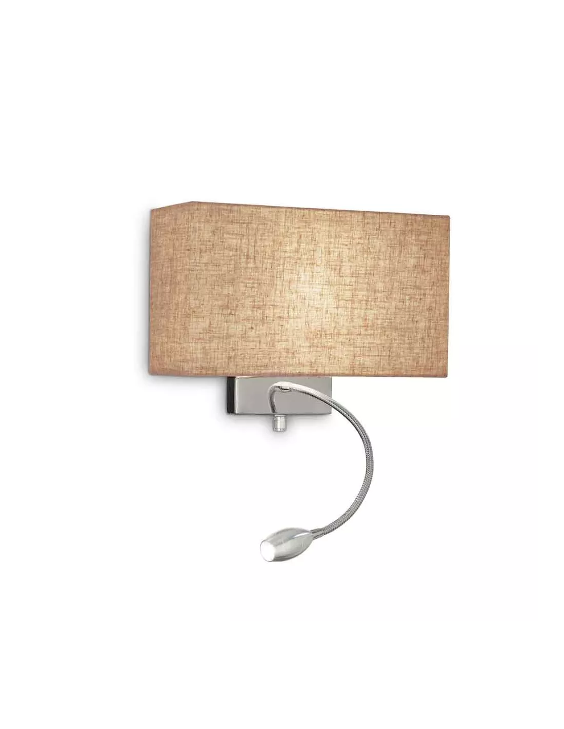 Applique design en tissu beige avec liseuse, Ideal Lux
