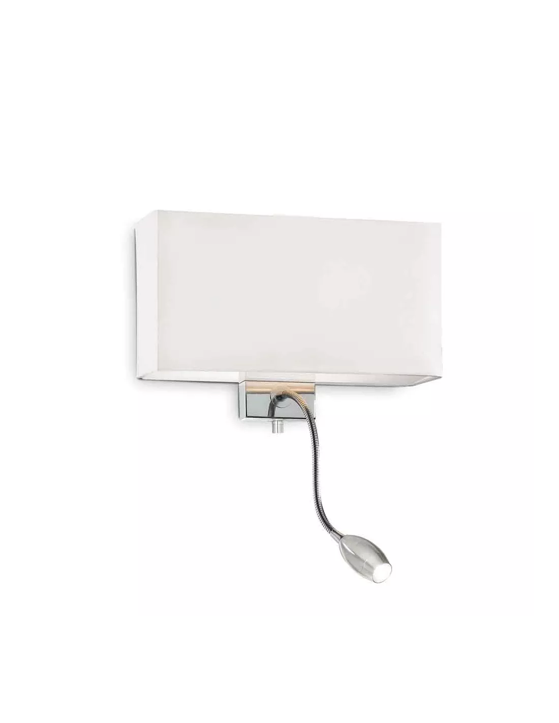 L’applique Hotel blanche est munie d’une liseuse, idéal pour lire tranquillement dans votre chambre ! La liseuse est commandée par un interrupteur indépendant. Vous pouvez donc l’allumer ou l’éteindre sans que cela n’affecte la personne à côté de vous. La structure de cette applique design Ideal Lux est en métal chromé.