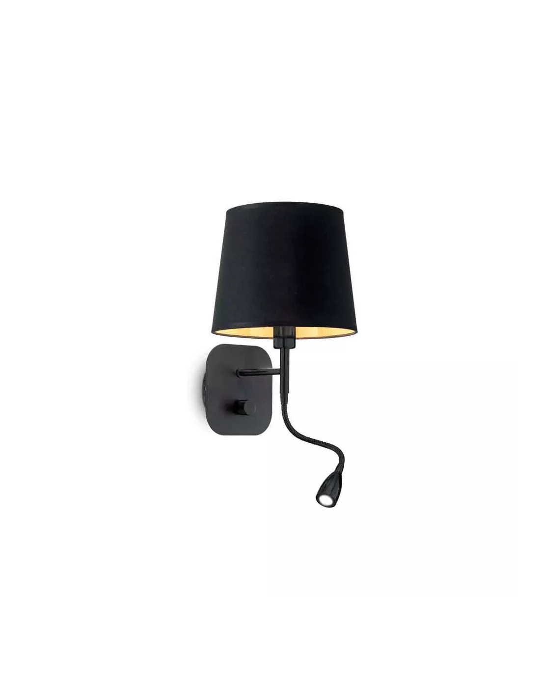 Applique/Liseuse ronde design en metal noir et abat-jour en tissu noir, Ideal Lux