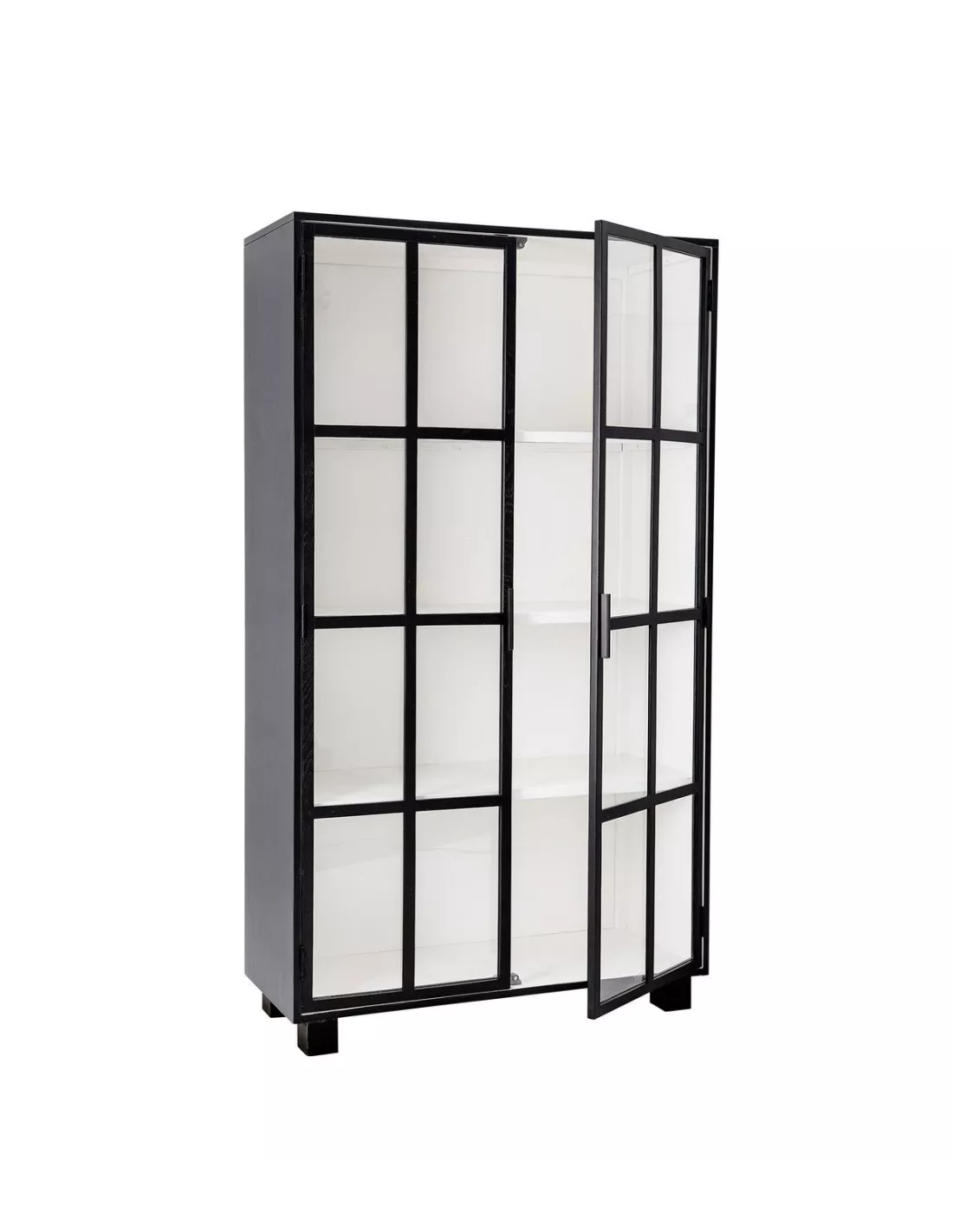 Armoire design vitrée à grands carreaux en chêne noir, Bloomingville