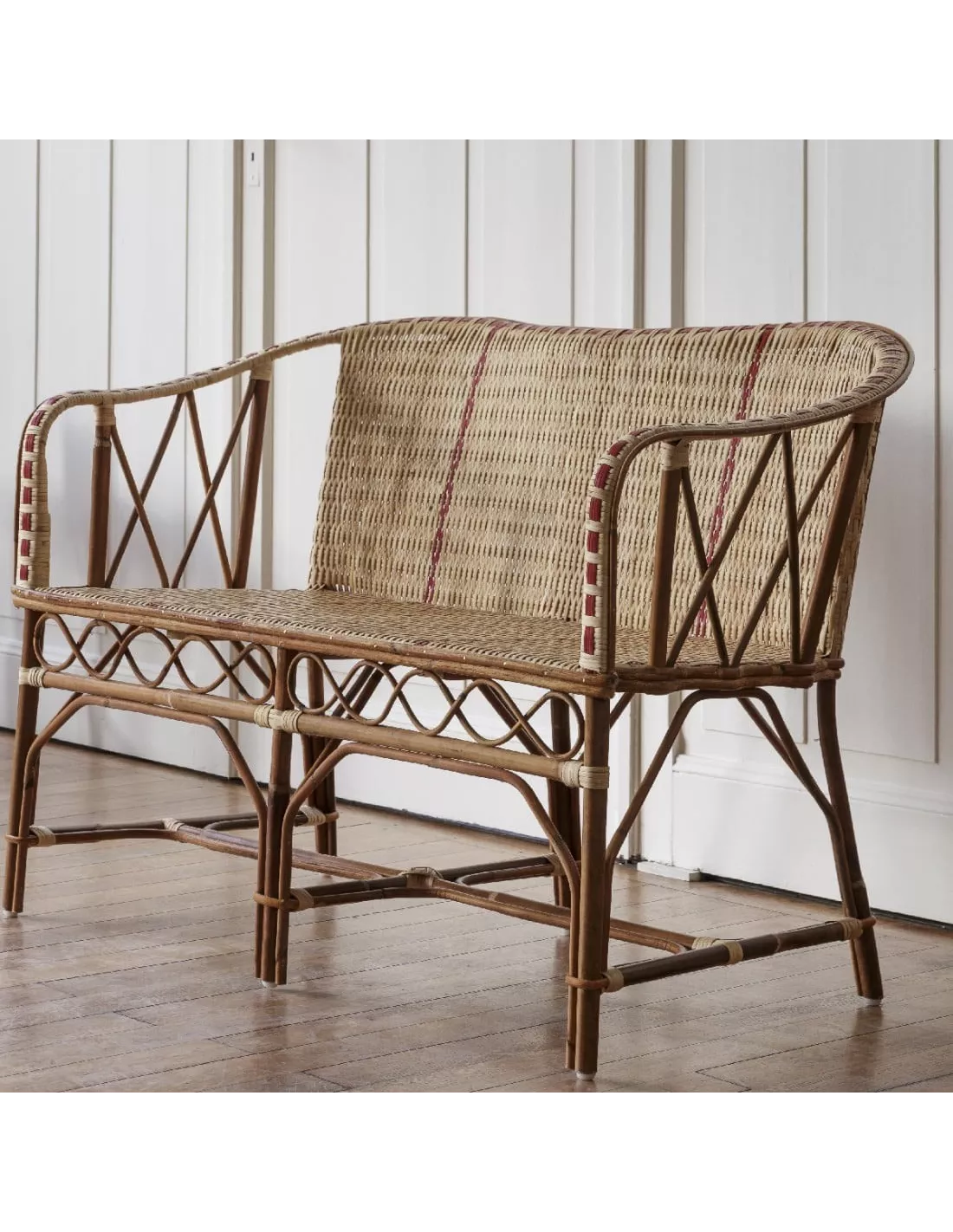 La banquette en rotin Bagatelle est emblématique du rotin à la Française de la Belle Epoque. Vous pourrez la disposer au salon, dans une véranda, bow-window, ou en terrasse couverte aux beaux jours.