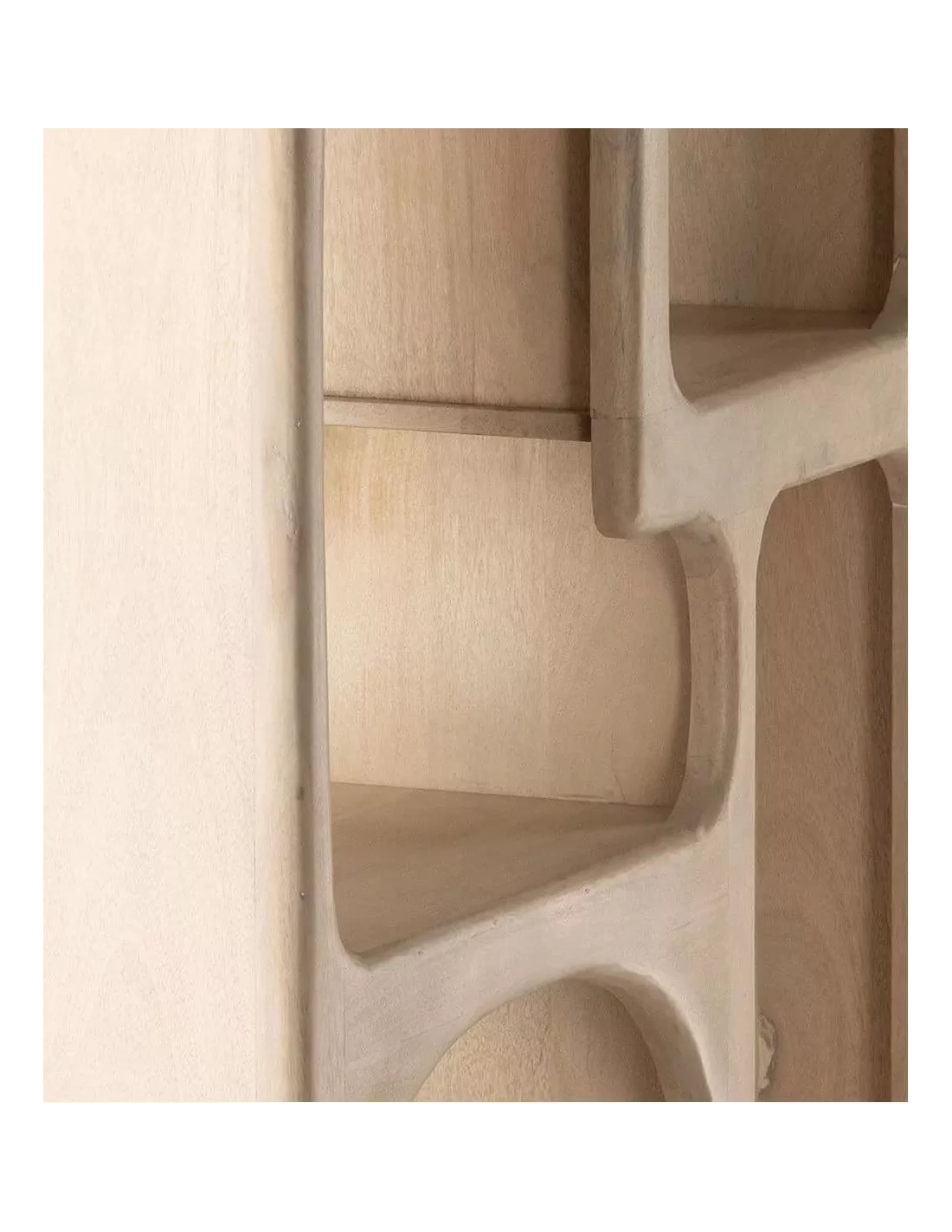 Le bois de manguier, reconnu pour sa robustesse et sa durabilité, est ici mis en valeur par des teintes douces de beige. Sa couleur apporte une luminosité bienvenue et une sensation d’apaisement dans tout intérieur. La finition contemporaine de cette bibliothèque beige design se fond harmonieusement dans divers styles de décorations, des plus modernes aux plus classiques.