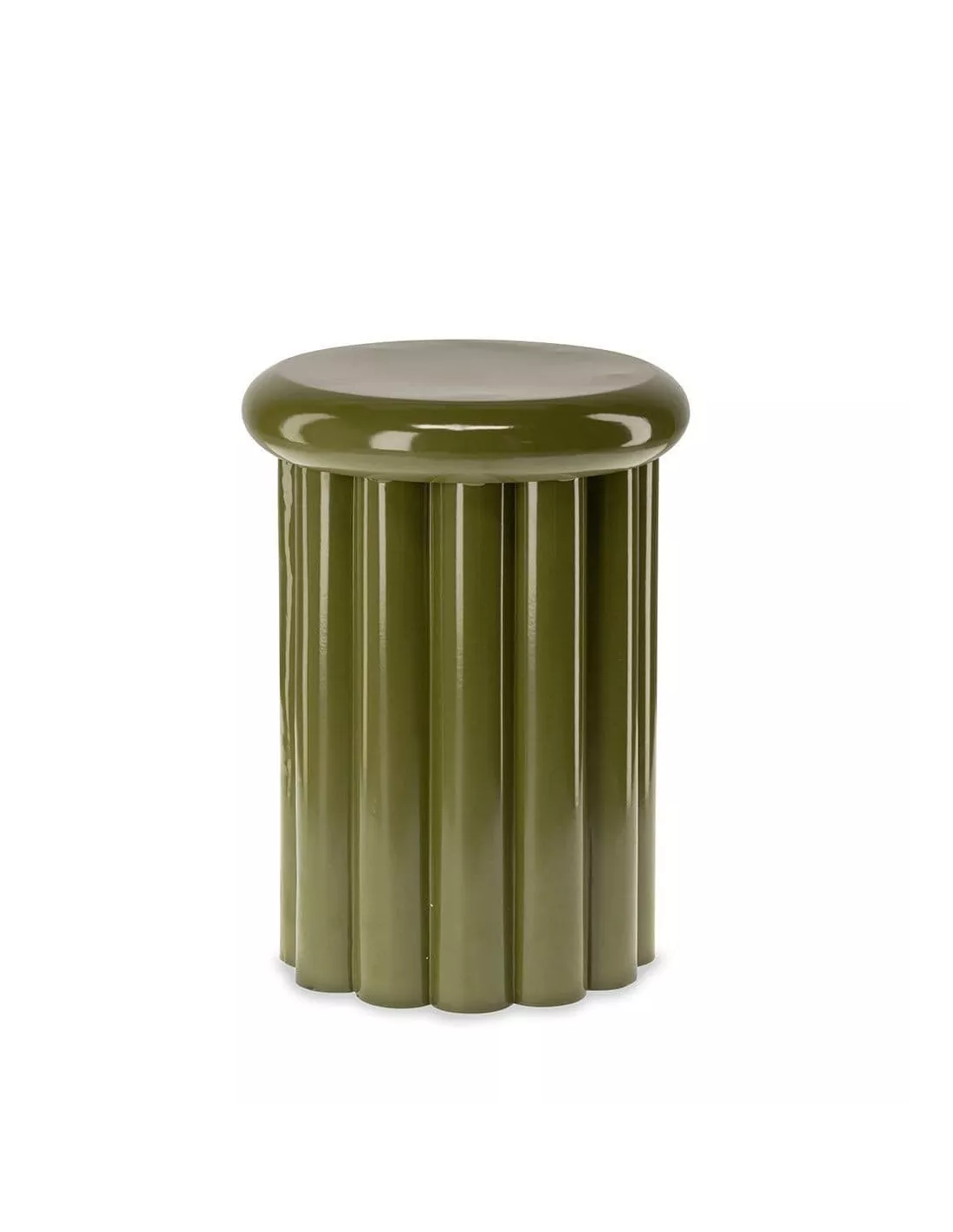 Bout de canapé en metal vert olive brillant