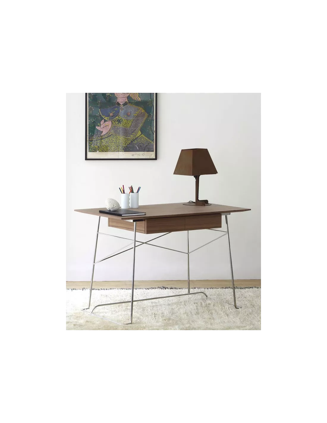 Bureau design épuré noyer doté de 2 tiroirs, Coédition