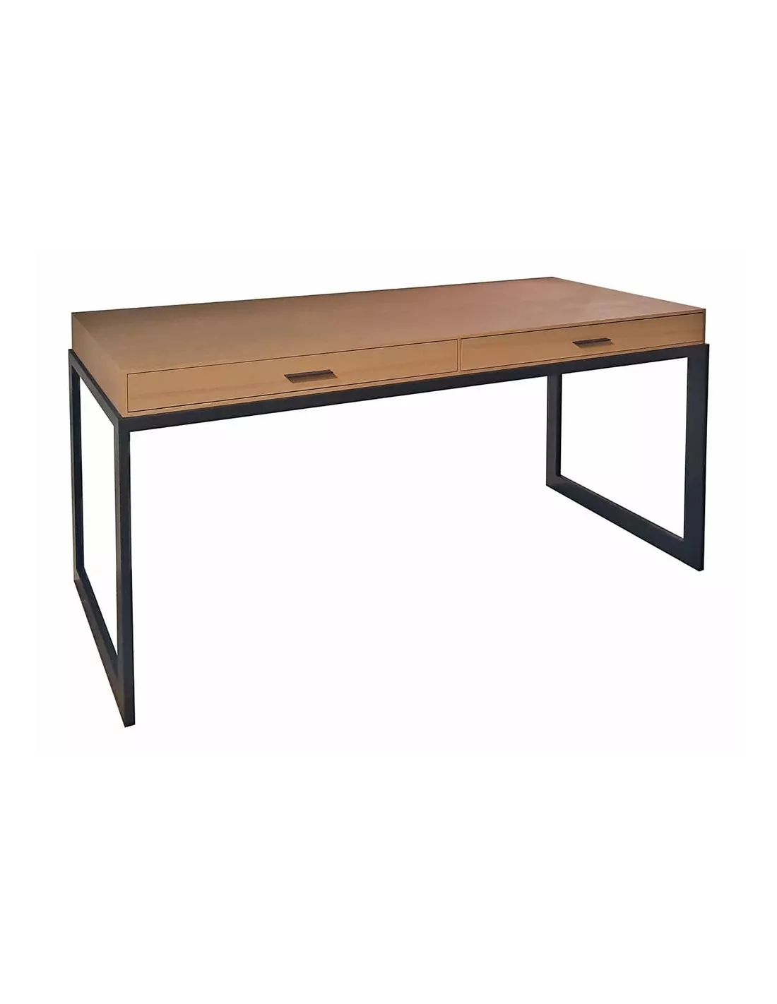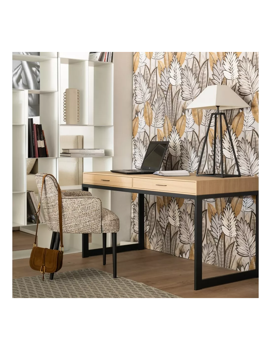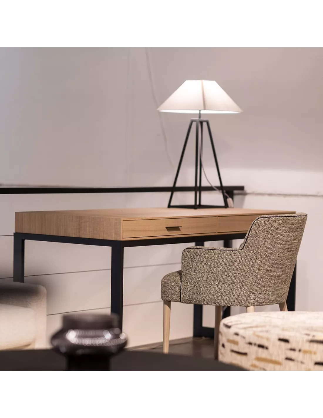 Bureau design en chêne doté de 2 tiroirs et piètement métal, PH Collection