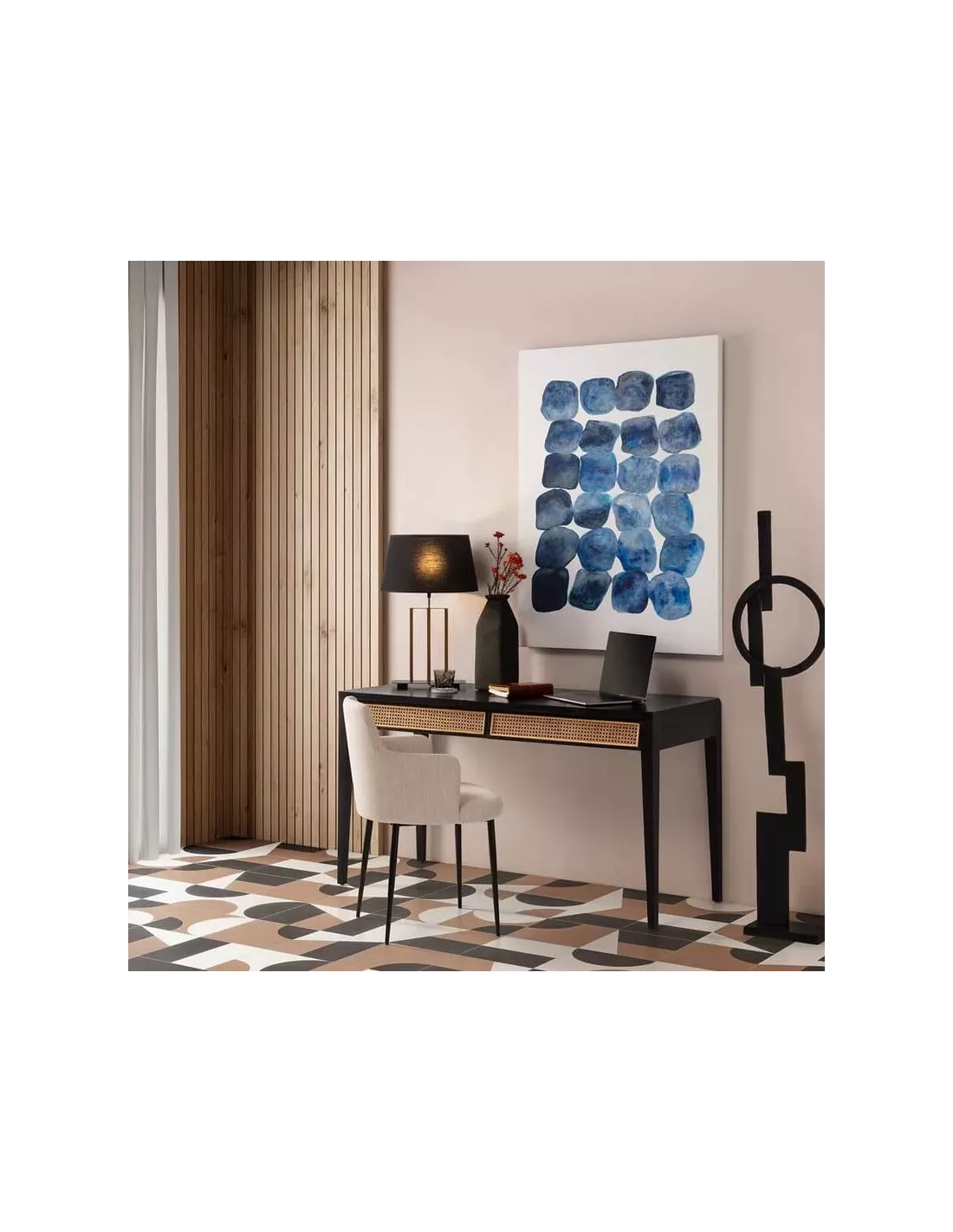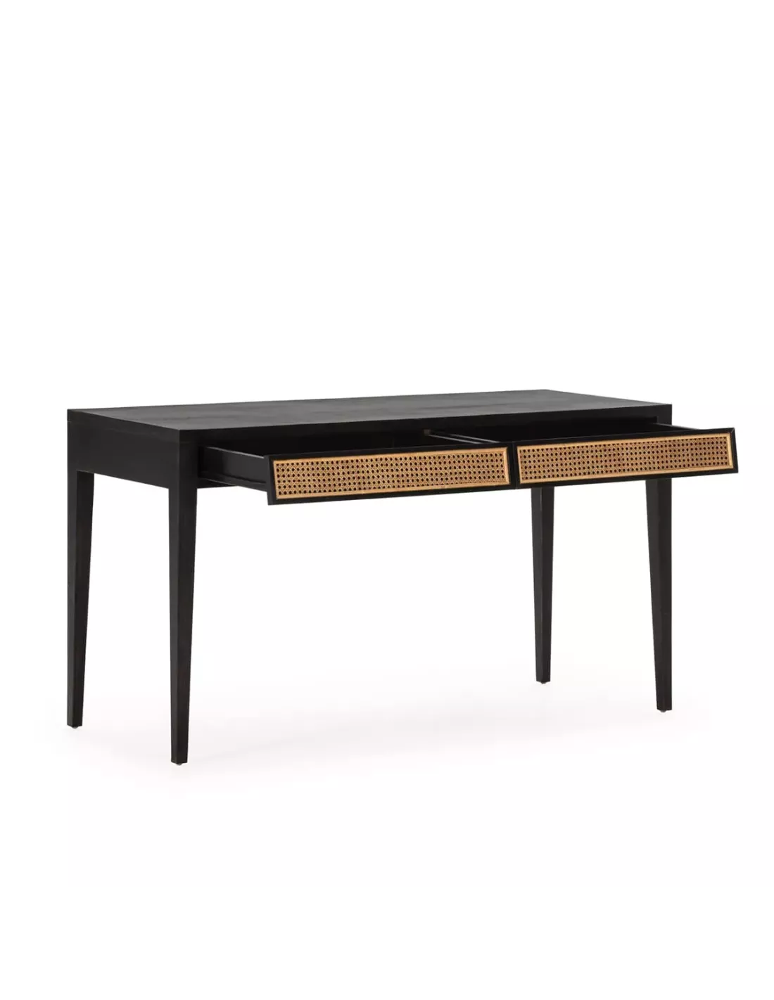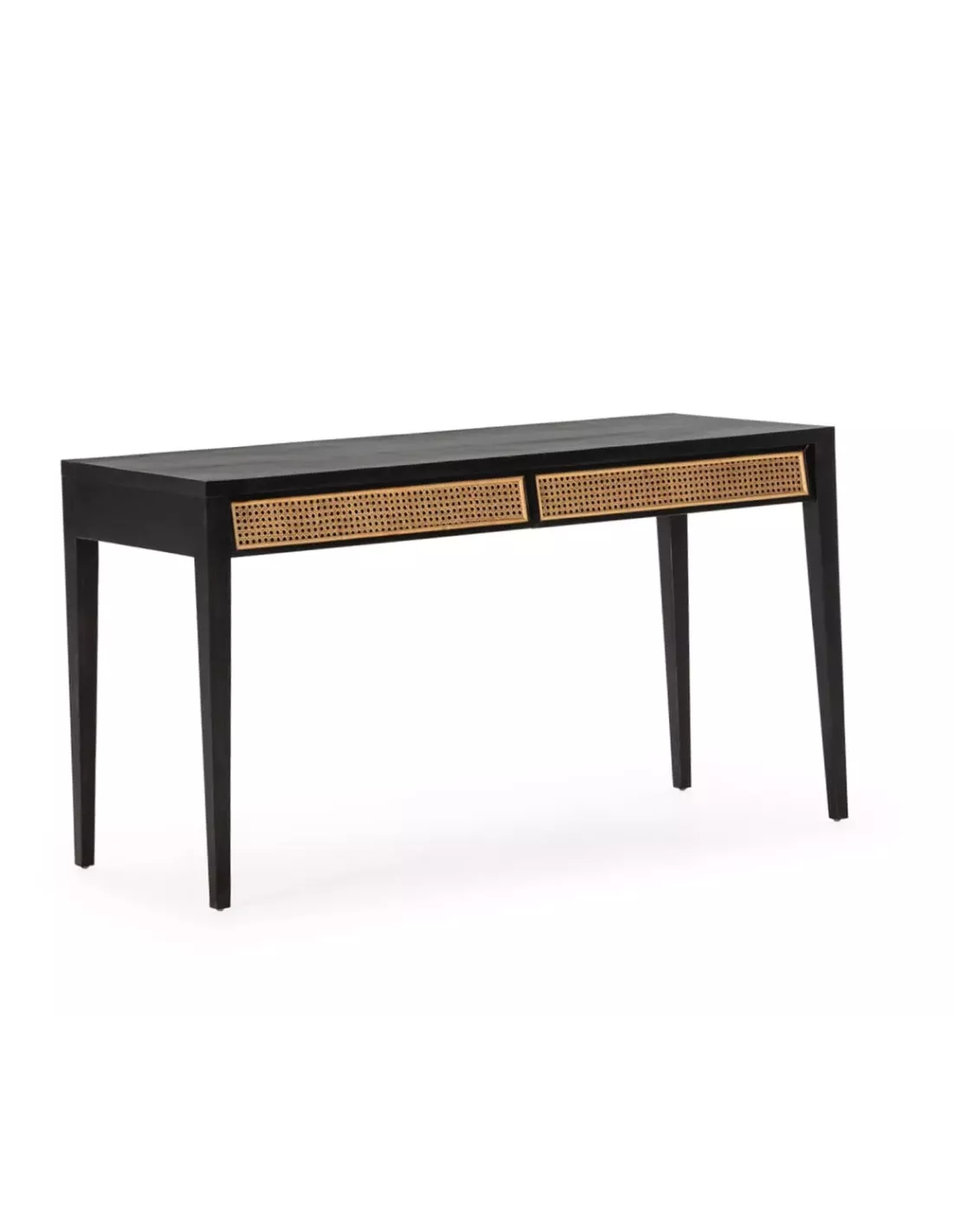 Réalisé en bois de cèdre issu de forêts durables, ce bureau dégage une beauté brute et authentique, rehaussée par la finition noire mate qui sublime son aspect. Les panneaux de cannage qui habillent les façades des tiroirs apportent une note naturelle et tendance, rappelant les traditions artisanales asiatiques.