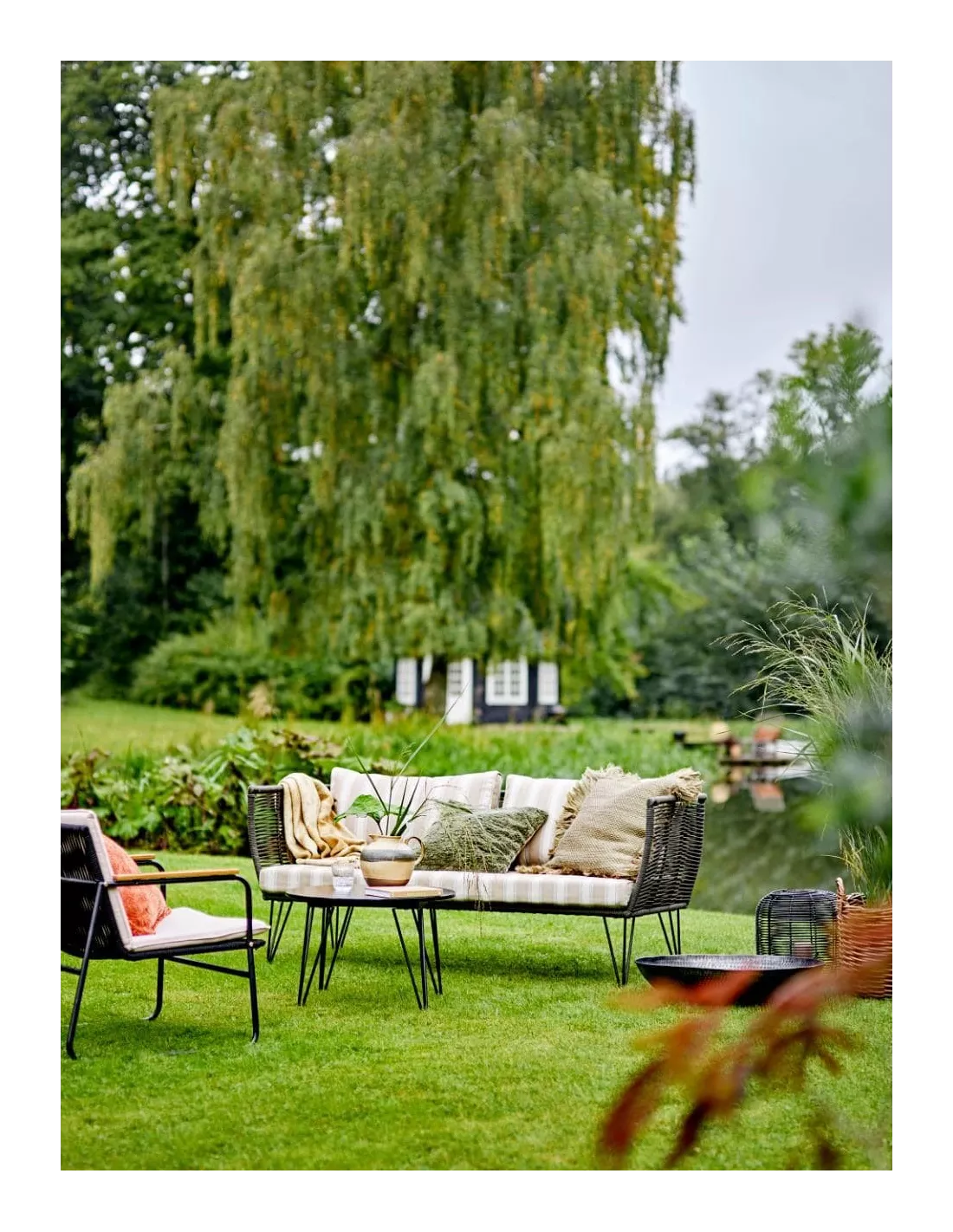 Ce canapé Mundo de Bloomingville est un formidable meuble d’extérieur en acier enduit de poudre avec corde en polyester tissée à la main. Ce cordage est résistant aux intempéries et aux rayons UV. La matière ajourée apporte une grande légèreté visuelle. Les housses de coussin sont en polyester dans une magnifique combinaison de couleurs avec un motif à rayures qui s’intègre à la perfection dans n’importe quel intérieur. Tenir le canapé à l’écart de la lumière directe du soleil permettra de prolonger la couleur du tissu et la durabilité du canapé. Détendez-vous dans ce très beau canapé danois de la Maison Bloomingville. Ses coussins déperlant sont dotés d’une housse en polyester lavable en machine à 30°.