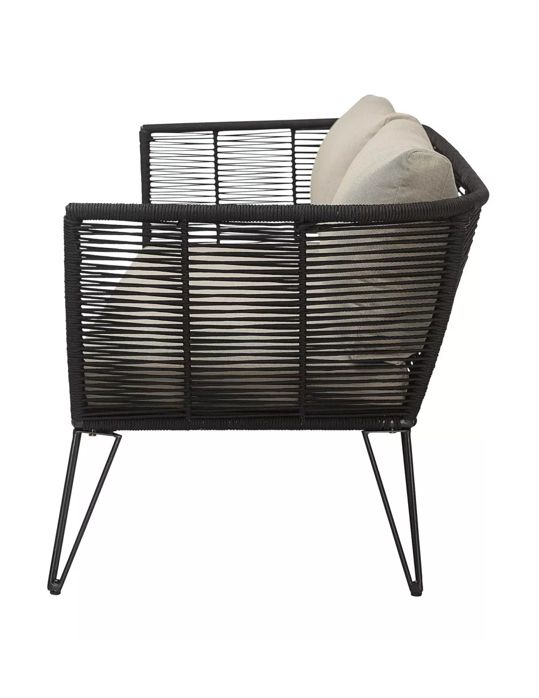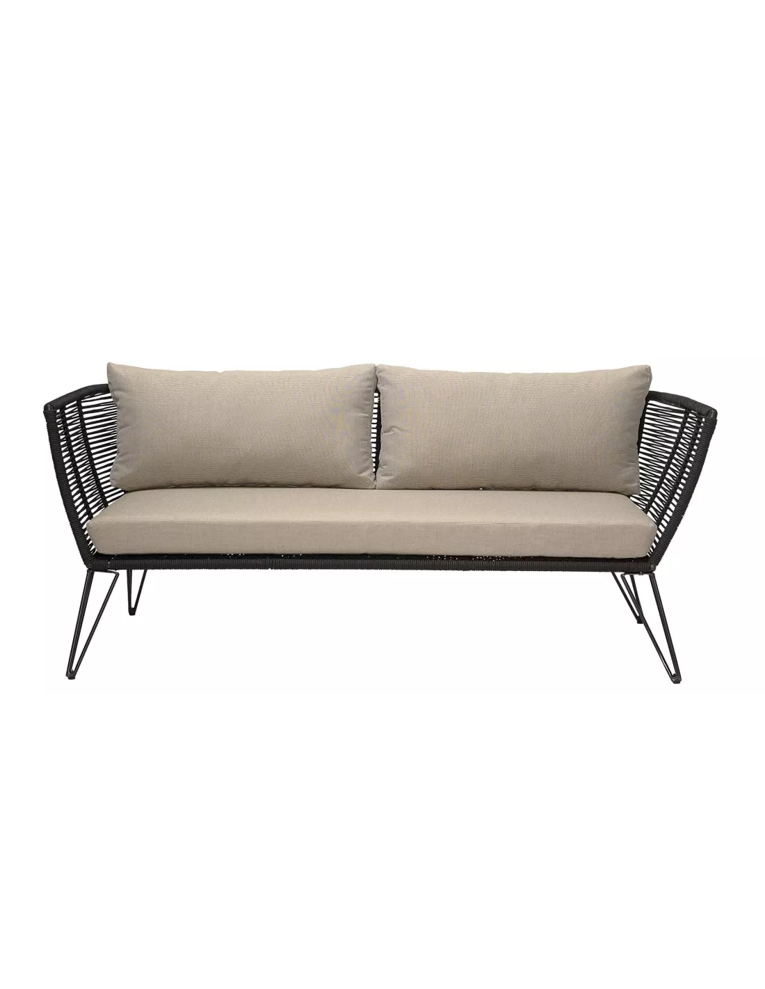 Canapé d’extérieur noir en métal 175 cm coussins sable, Bloomingville