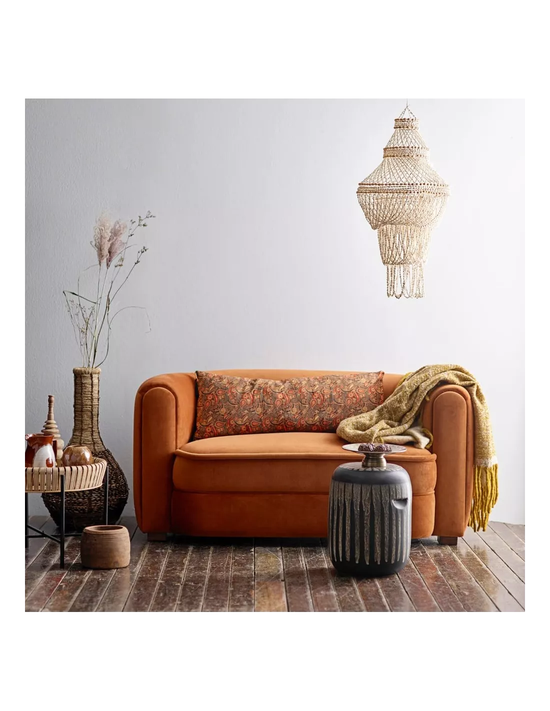 Canapé 2 places courbe design en velours ocre, Bloomingville