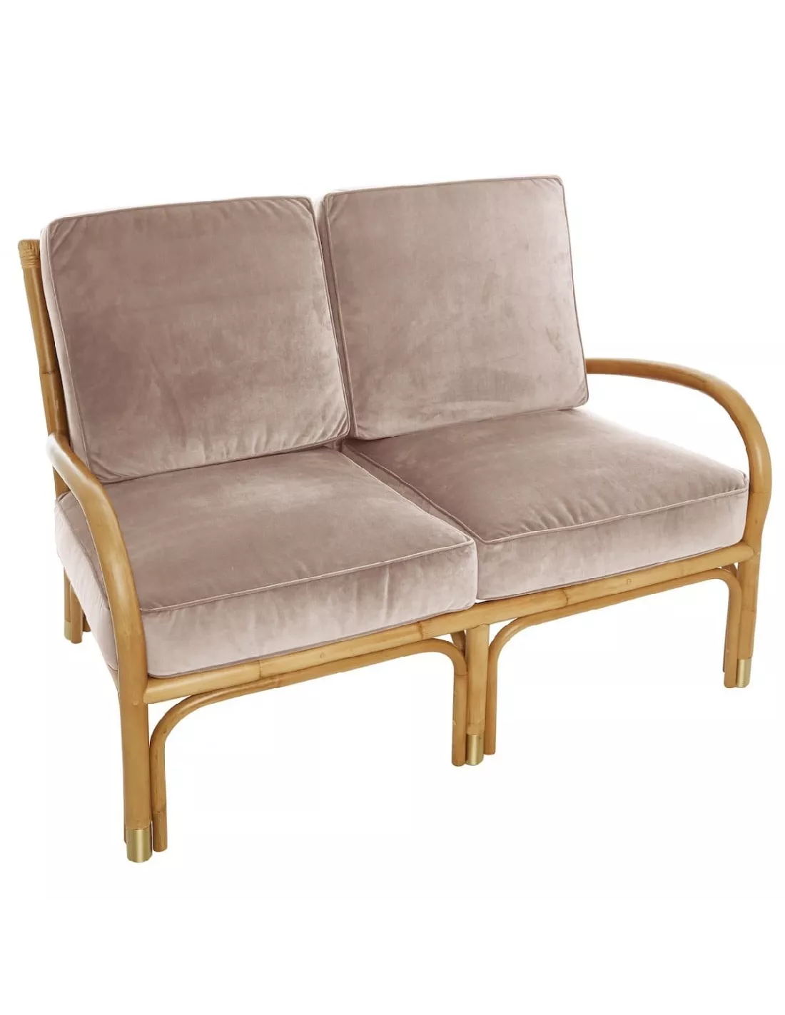 Inspiré des lignes du rotin des années 70-80, le canapé rotin/velours 2 places Riviera en reprend les codes graphiques caractéristiques : rotin au diamètre généreux, formes simples, dimensions compactes, finitions haut de gamme : confort exceptionnel des coussins Bultex made in France, tissu velours déhoussable, double cannage en garniture des dossiers, cabochons en laiton…