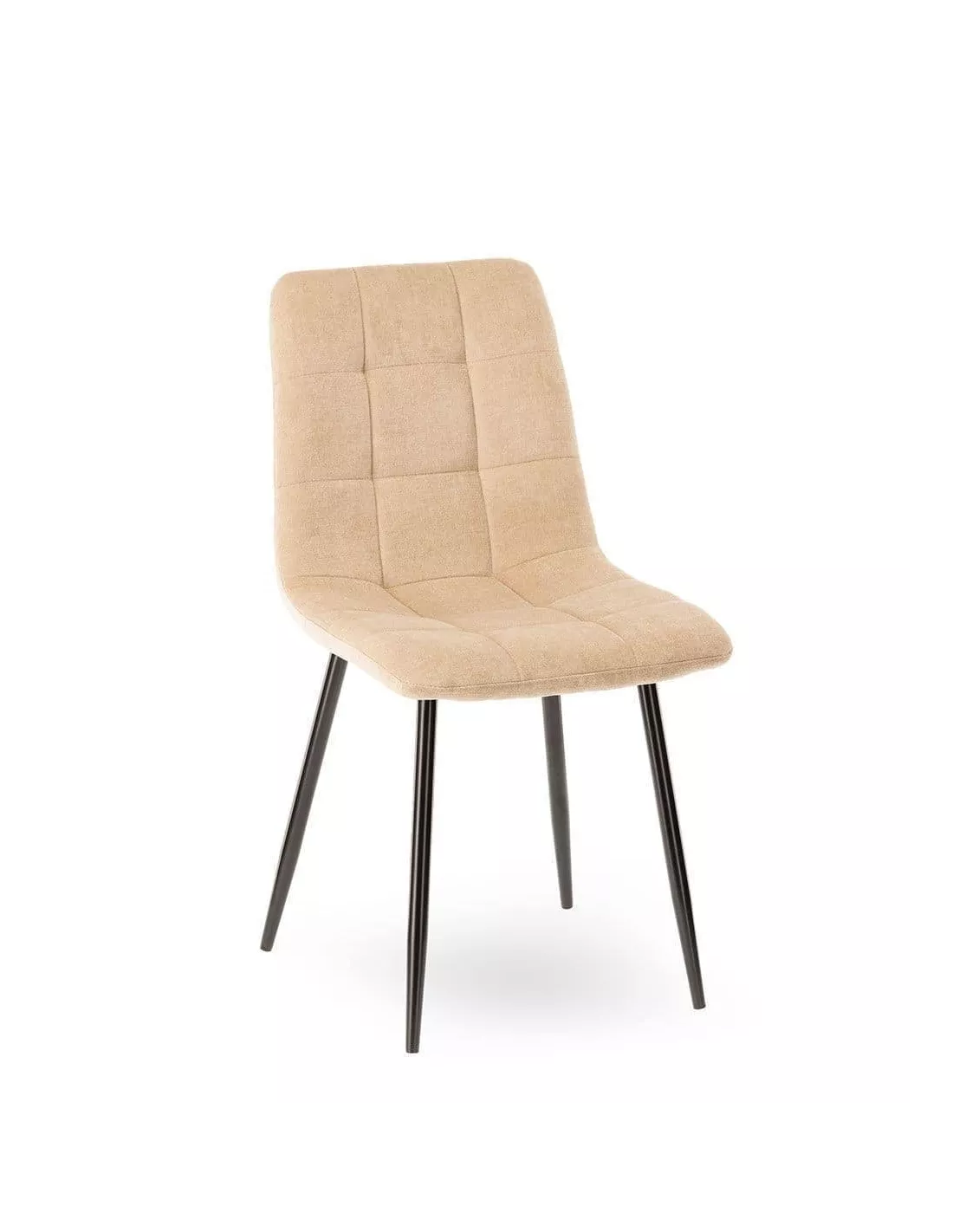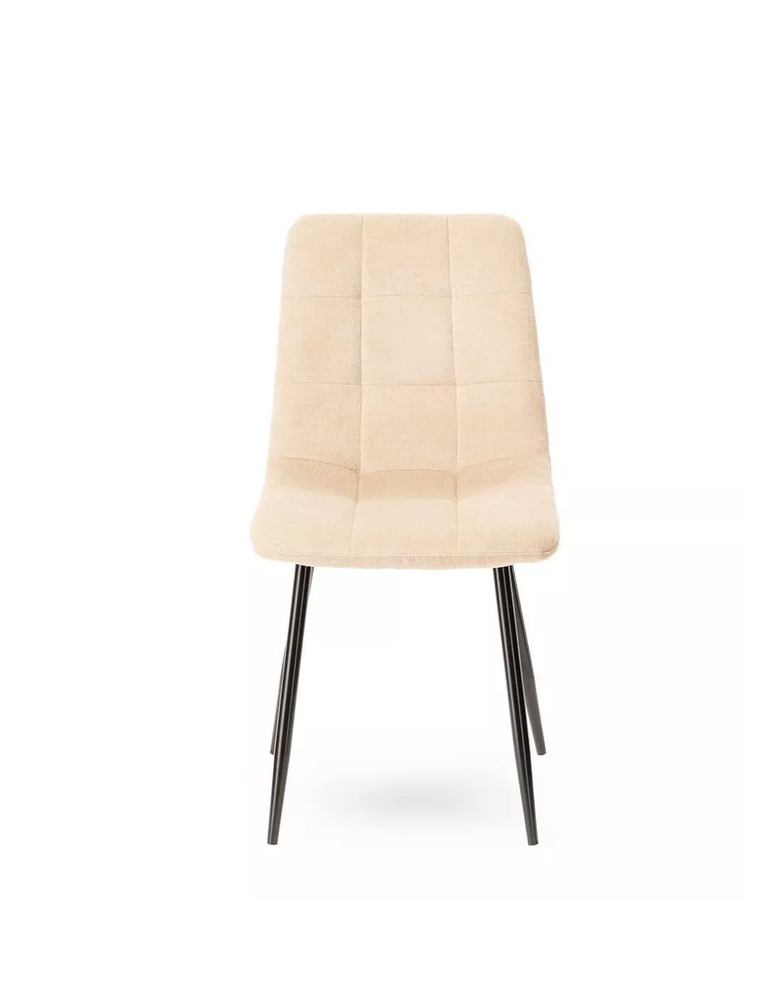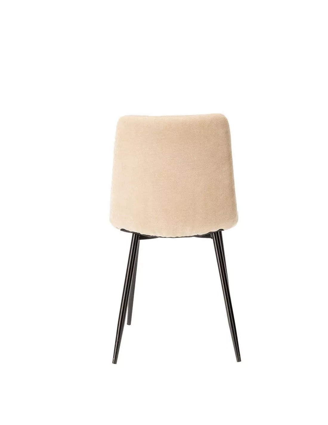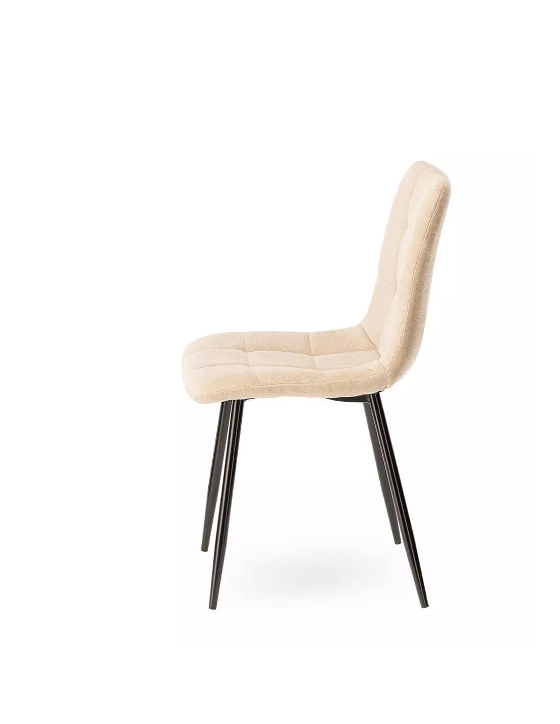 Chaise design beige clair en velours avec pieds en métal noir, Déco en Ligne