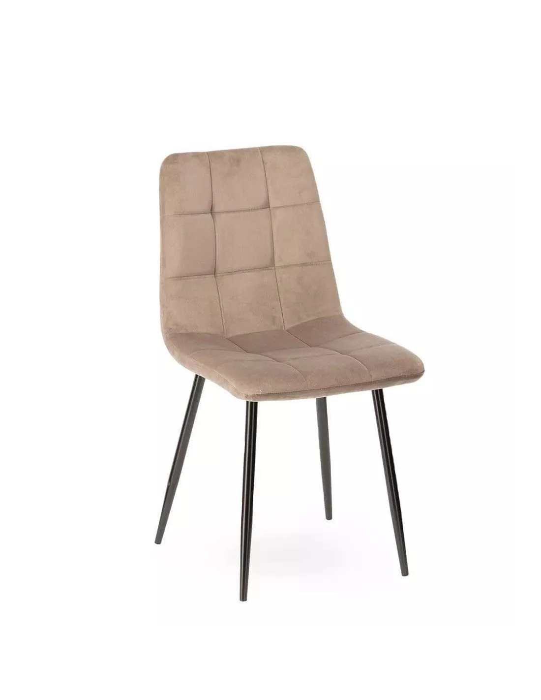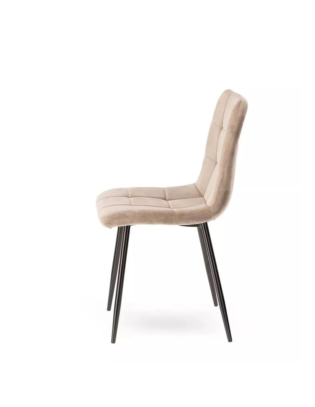 Chaise design beige en velours avec pieds en métal noir, Déco en Ligne