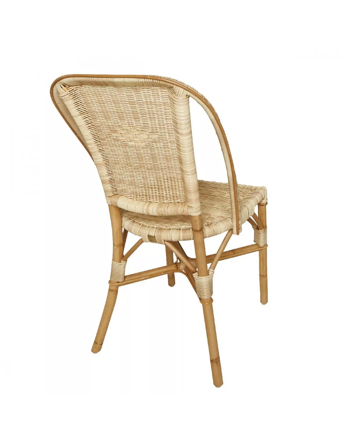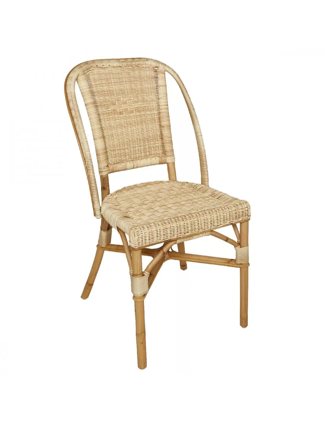 La chaise en rotin Provence, présentée ici dans sa version en rotin naturel et tressage résine, est inspirée du fauteuil grand-père original, dont elle reprend les lignes légendaires: le fameux motif en « diamant » dans le dossier, la structure en rotin naturel. Petite entorse à la règle, le tressage est ici en résine de synthèse, plus « outdoor » et plus résistant aux usages intensifs que la moelle de rotin d’origine. Un peu plus haute d’assise et de dossier que le fauteuil, et sans accoudoirs pour mieux l’installer autour d’une table, c’est une vraie chaise de salle à manger. A la ville, à la campagne, en appoint dans une chambre, dans un jardin d’hiver, ou à l’ombre de la tonnelle aux beaux jours, elle a l’humeur vagabonde, et vous suivra partout.