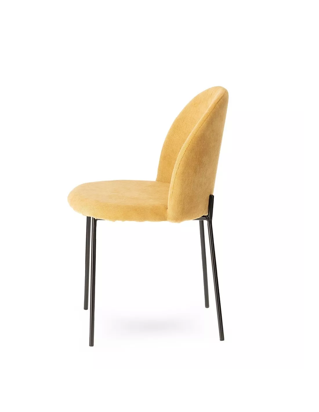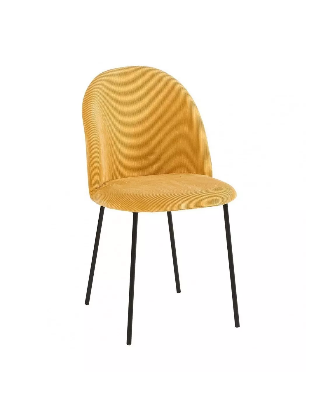 Chaise jaune design en velours côtelé avec pieds noirs, Déco en Ligne