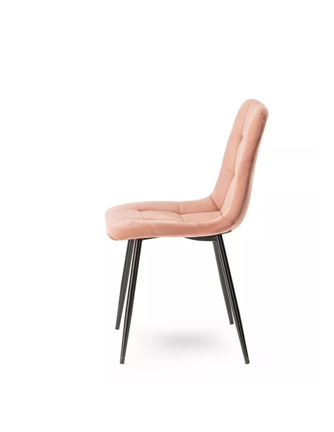 Avec ses lignes simples et douces inspirées du style scandinave, cette chaise design en velours rose poudré s’harmonisera facilement avec votre table de salle à manger et à votre décoration. Cette chaise est dotée d’une assise moelleuse et douillette et de pieds fuselés en métal noir. Son design se révèle être extrêmement confortable.