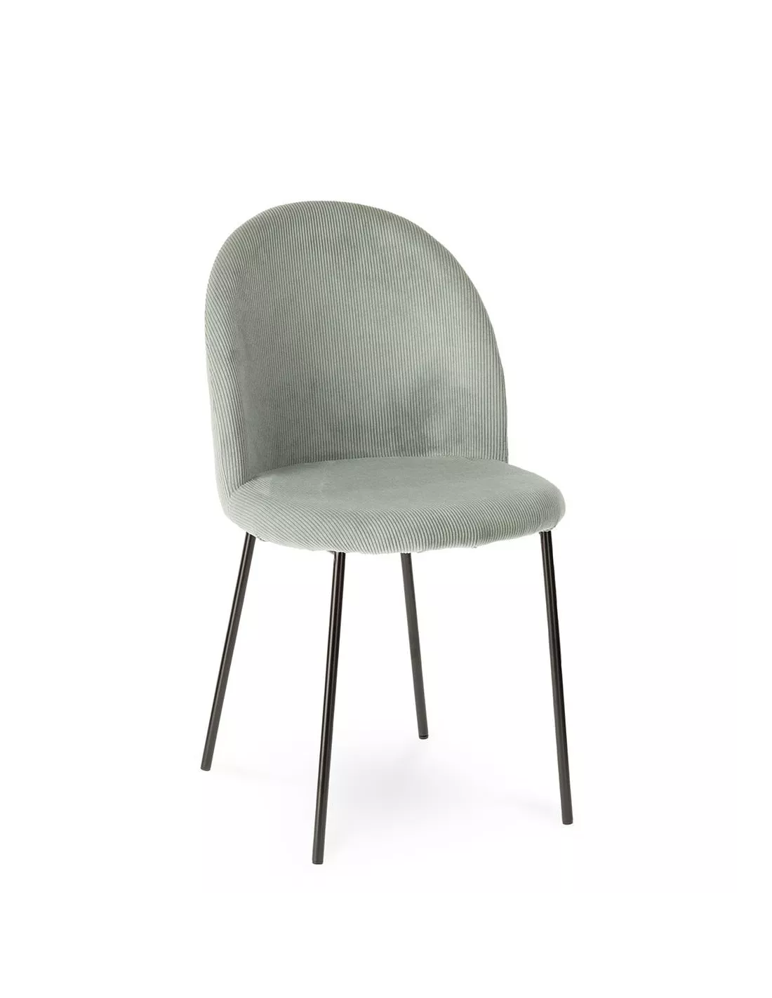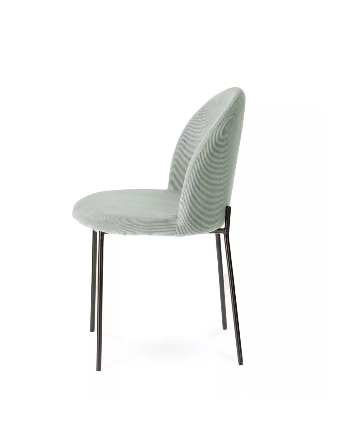 Chaise design vert d’eau en velours côtelé avec pieds en acier noir, Déco en Ligne