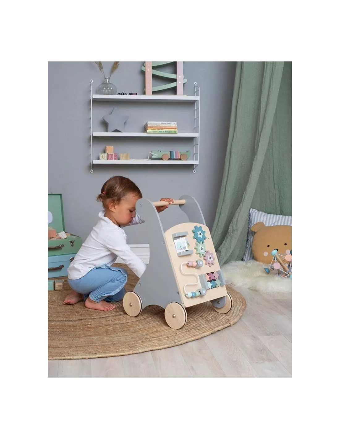 Un joli chariot de marche et d’activités et pour gagner en dextérité, parfaire l’apprentissage des formes et des couleurs mais aussi de la mobilité, votre enfant pourra passer de longs moments à découvrir des engrenages ou boulier !