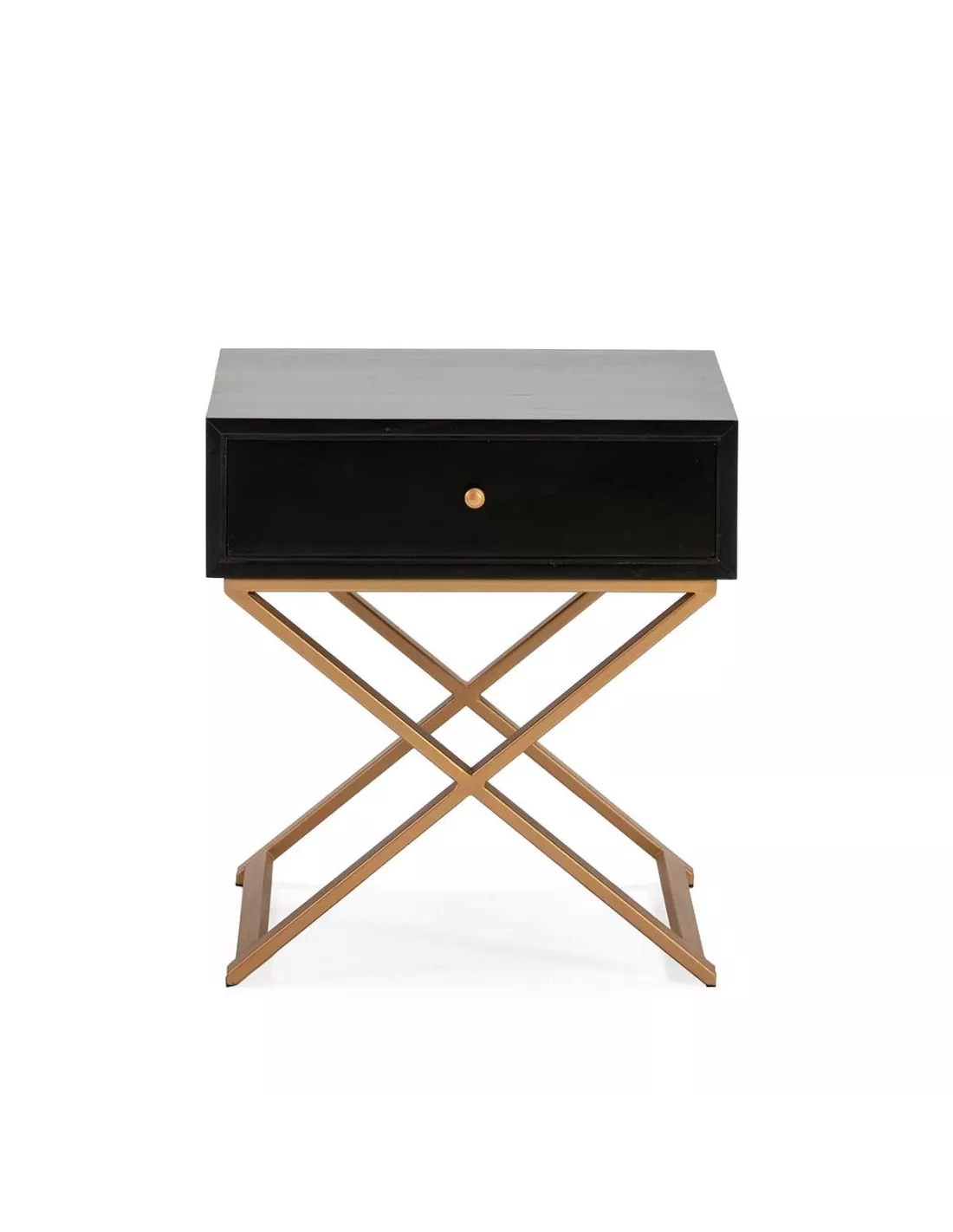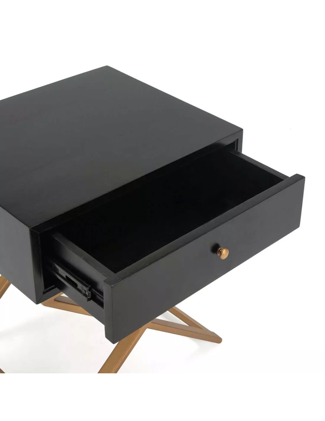 Chevet design noir 1 tiroir au piètement doré, Thai Natura