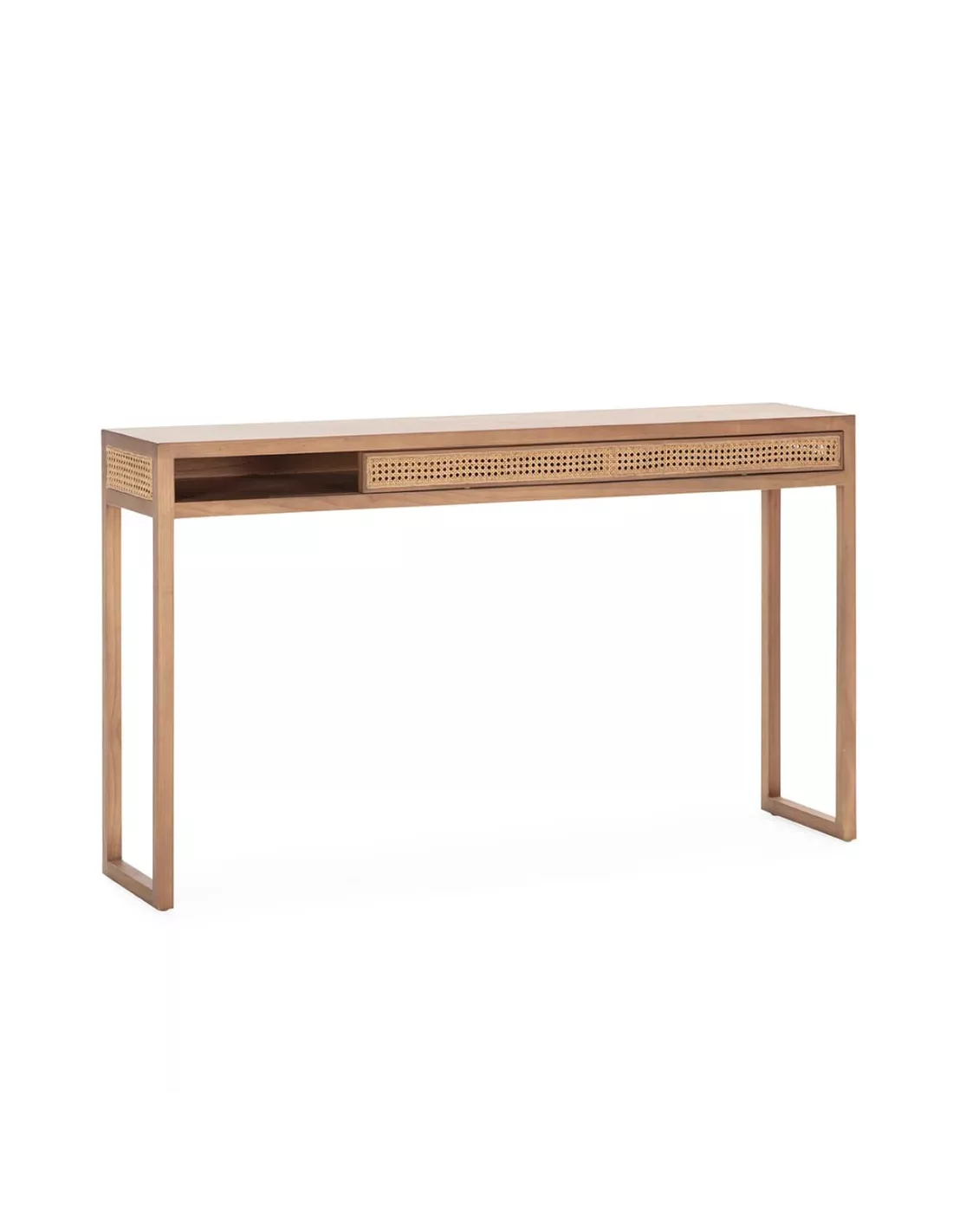 Console tendance en bois naturel et cannage de rotin, Thai Natura