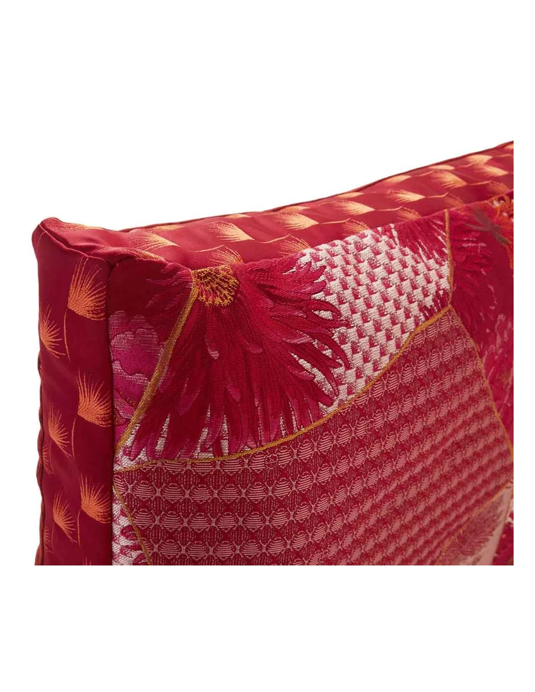 Apportez une note de romantisme et d’exotisme à votre intérieur avec le motif du coussin Hanabatake qui signifie « parterre de fleurs » en japonais. Ce design floral adopte une palette de couleurs vives, dont les tons donnent un aspect luxuriant au bouquet. Ce coussin, riche en teintes, est proposé par Kenzo. Le verso du coussin est doté d’un élégant motif ton sur ton rouge.