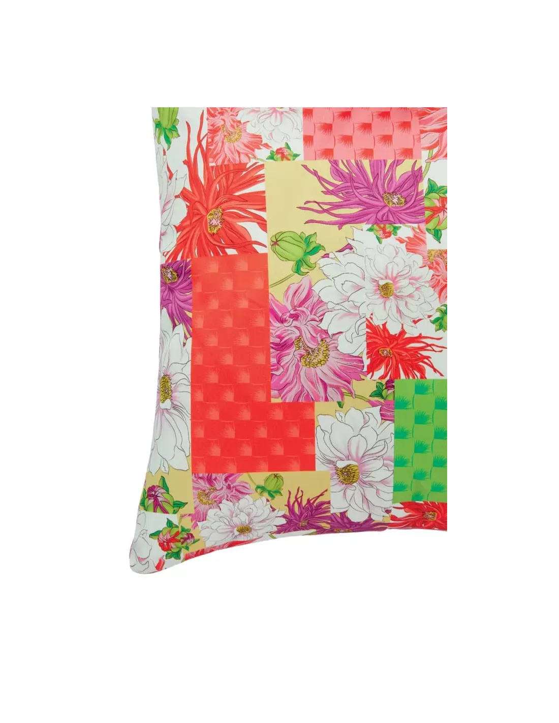 L’imprimé de ce coussin déhoussable joue avec les fleurs et les formes géométriques, créant une composition graphique et éclatante. L’intérieur est rembourré de plumes 100% pour un confort optimal.