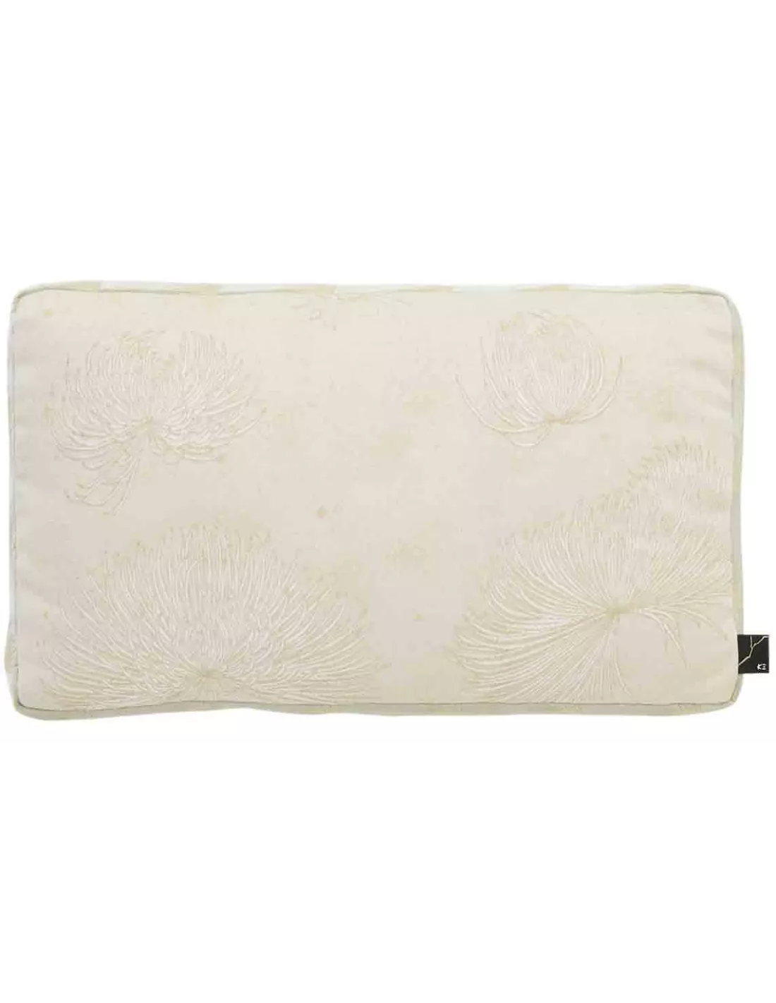 Coussin rectangulaire naturel arborant de fins chrysanthèmes, K3 design by Kenzo Takada