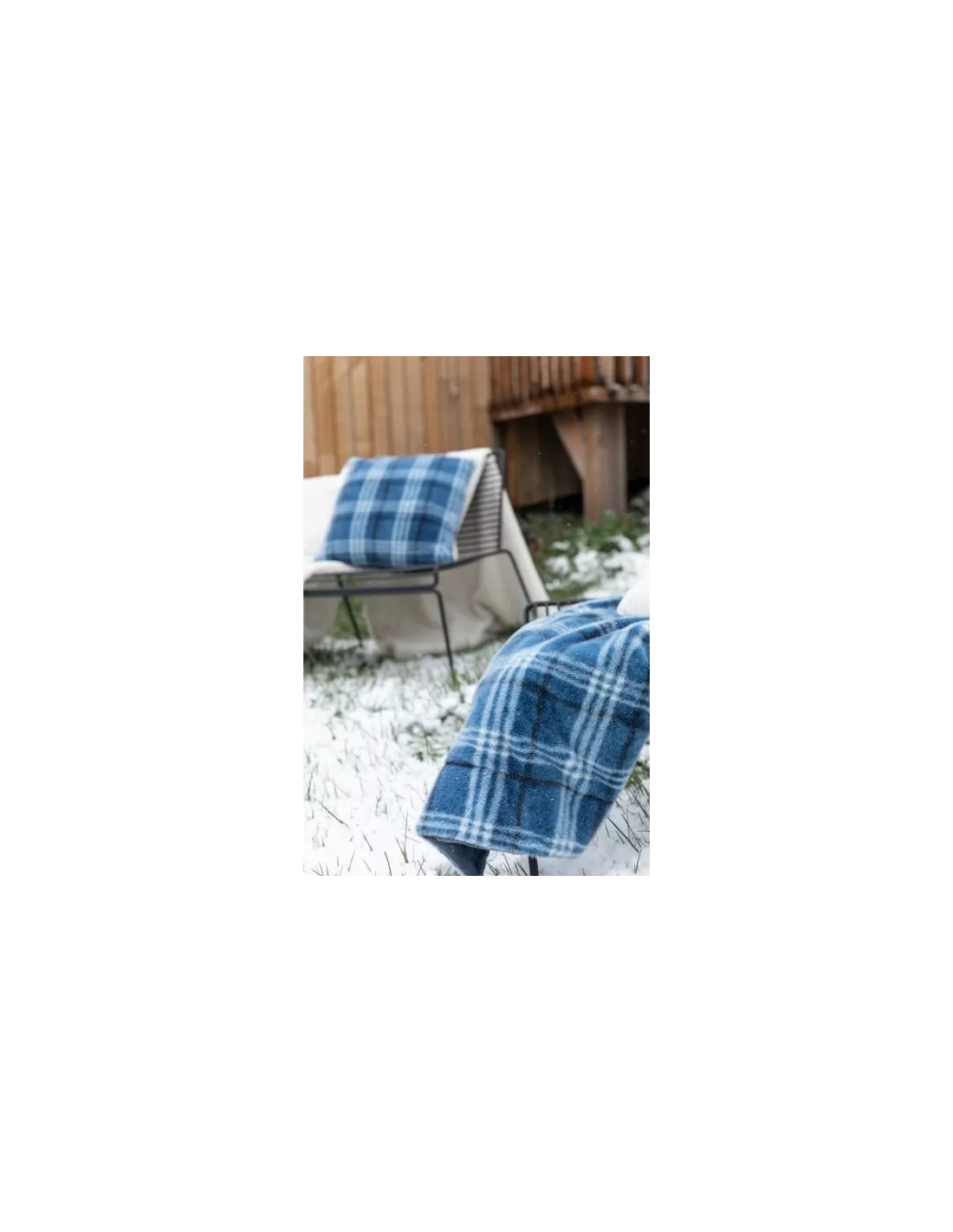Coussin réversible en fausse fourrure aspect lapin imprimé carreaux bleus et verso en microfibre ultra douce, Vivaraise