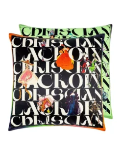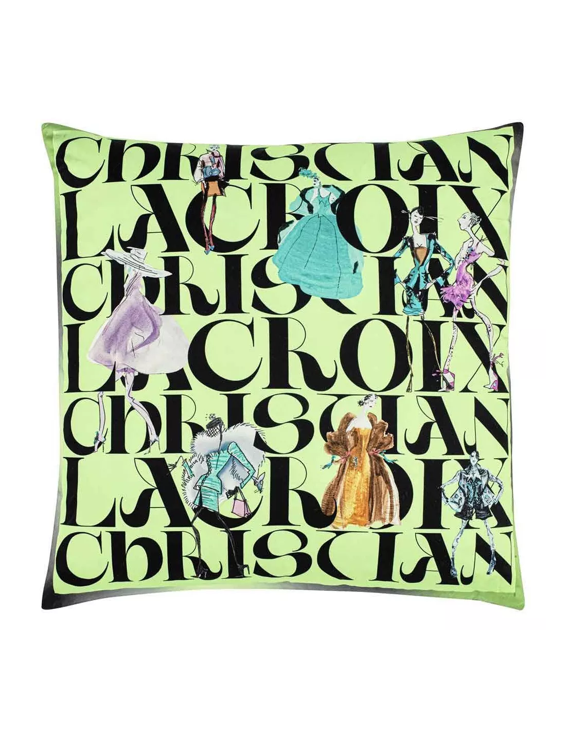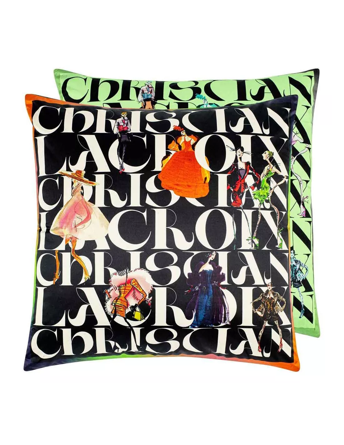 Coussin design carré arborant d’élégants dessins de mode, Christian Lacroix