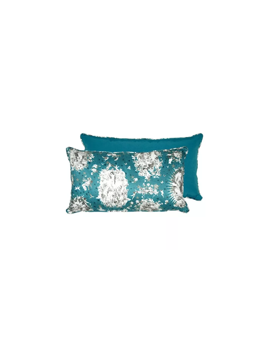 Coussin Sentiments pétrole Jean Paul Gaultier, dont le dos est uni pétrole. Coussin rectangulaire aux motifs romantiques chers au créateur. Le coussin issu de la collection Angelots, se coordonne aux coussins Amour, Couple et Vaporeux, signature Jean Paul Gaultier.