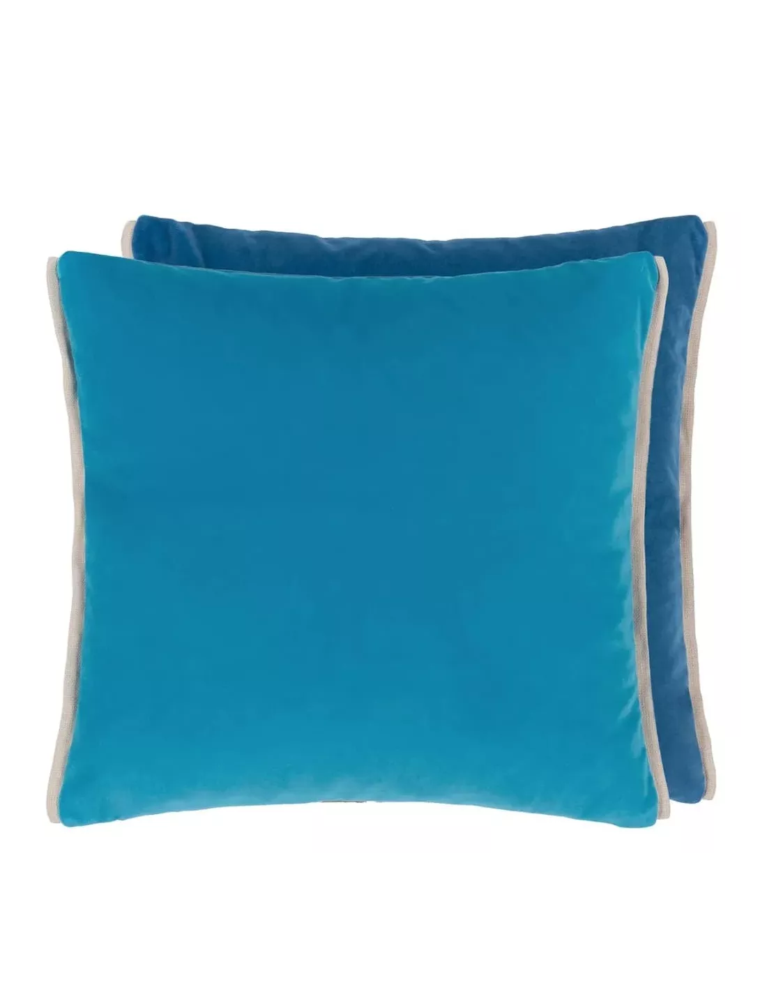 Coussin carré design en velours uni bleu, Designers Guild