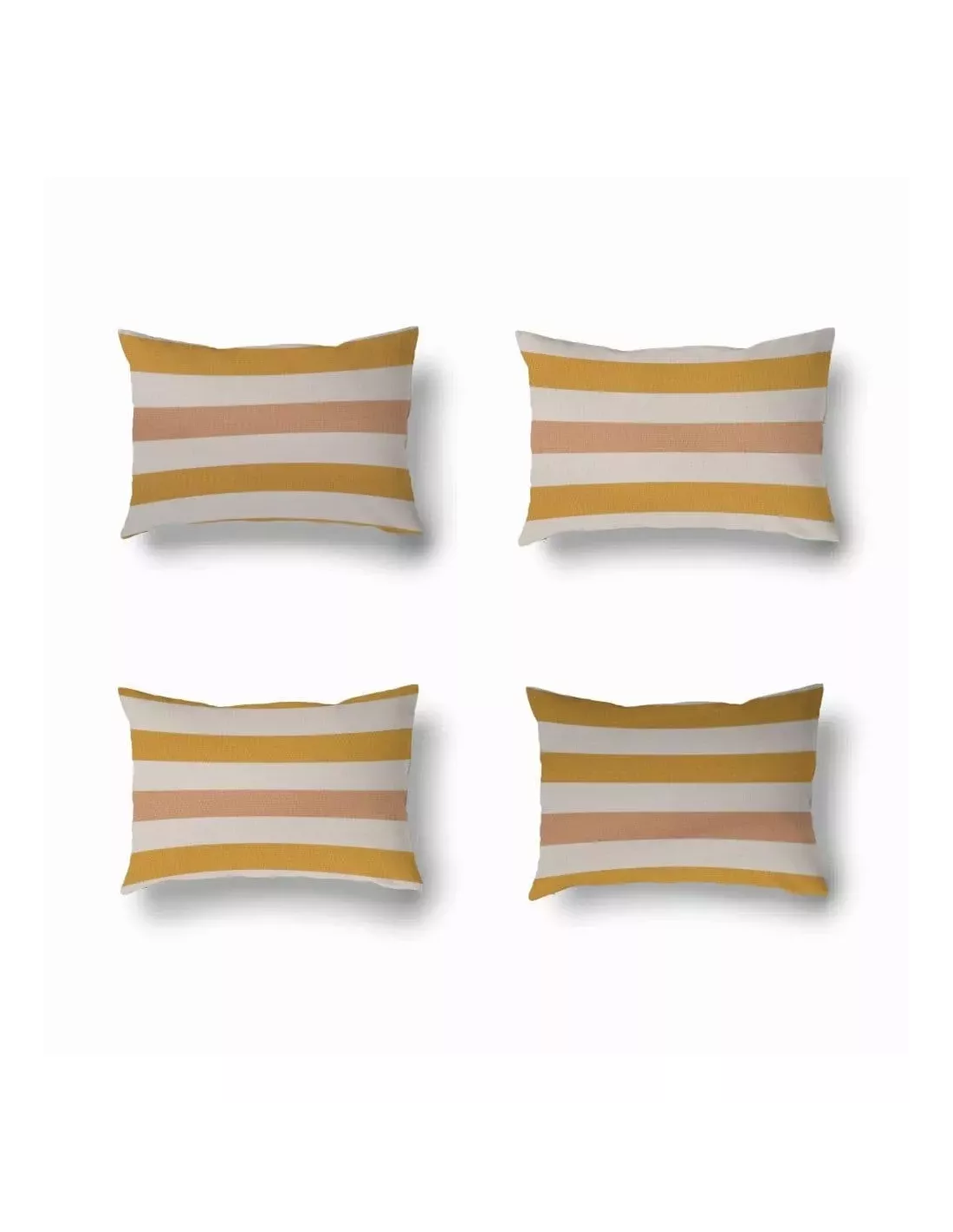 Ensemble de coussins jaune et écru rectangulaires à rayures 40×60 ou 30×50 cm, les Toiles du Soleil