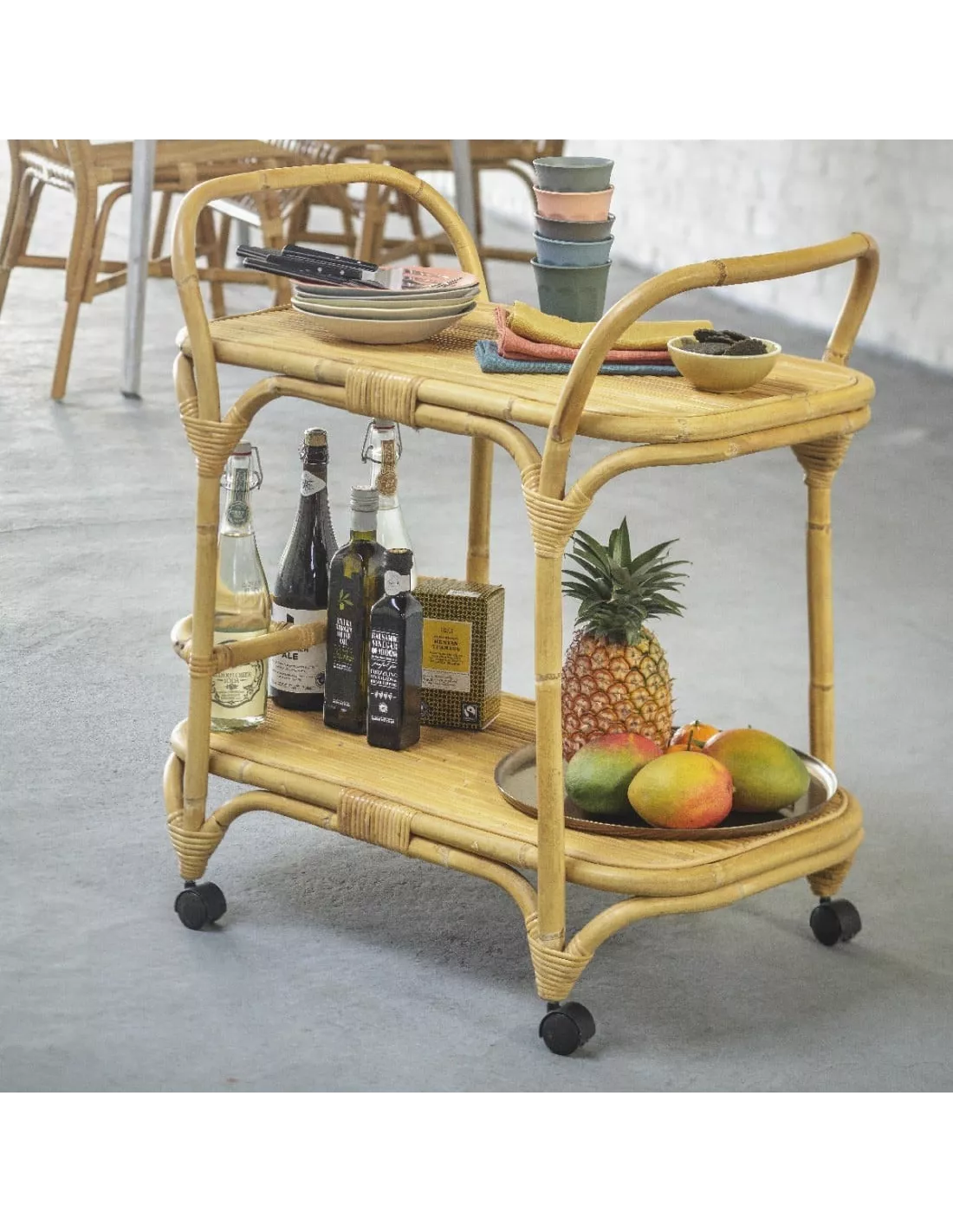 Desserte en rotin roulante vintage, KOK Maison