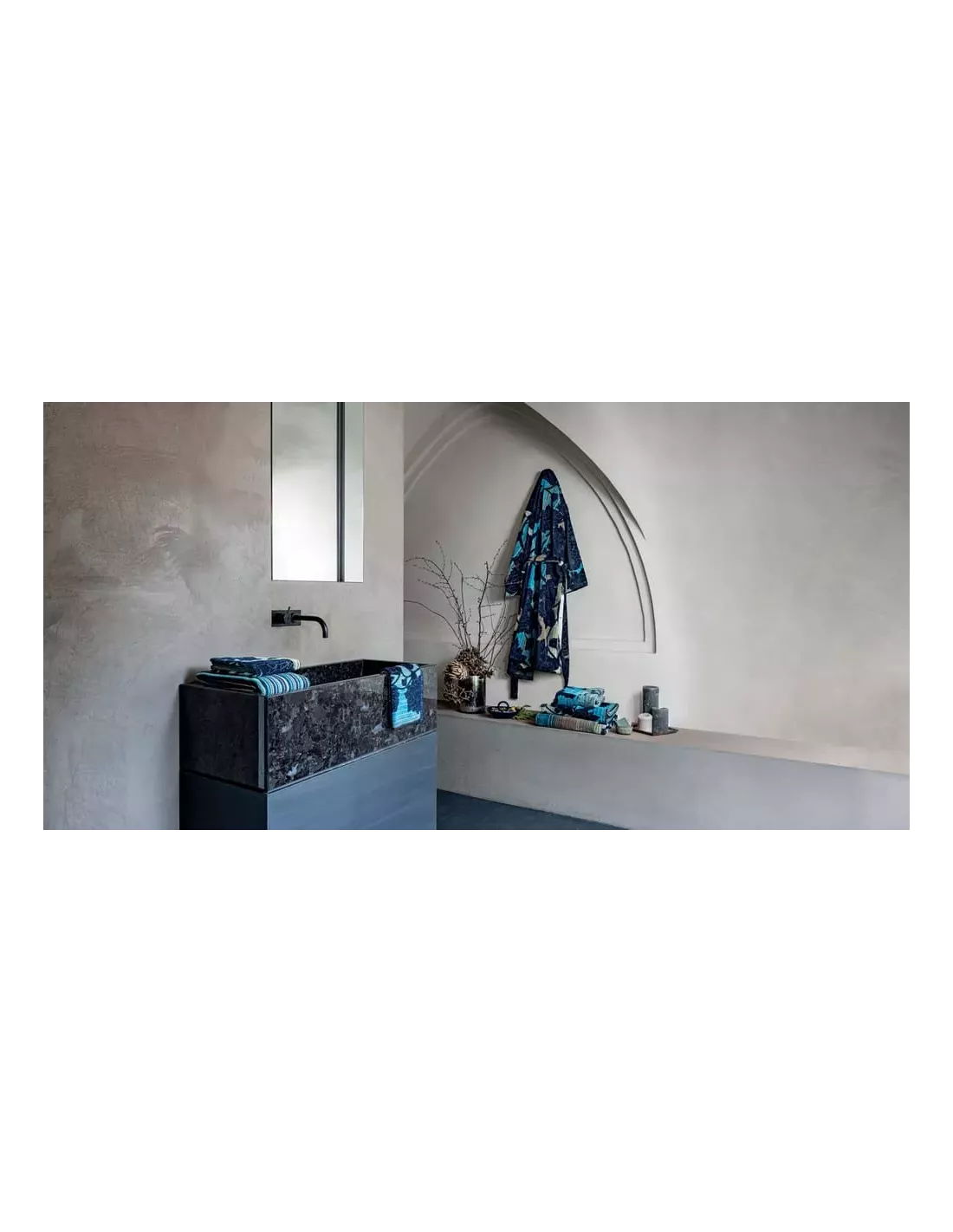 Réalisé dans une éponge velours aux tons de bleus profonds, ce drap de bain captive le regard dès le premier coup d’œil et en font un véritable cocon de confort, parfait pour se sécher après un bain relaxant ou s’envelopper dans un moment de pure détente.
