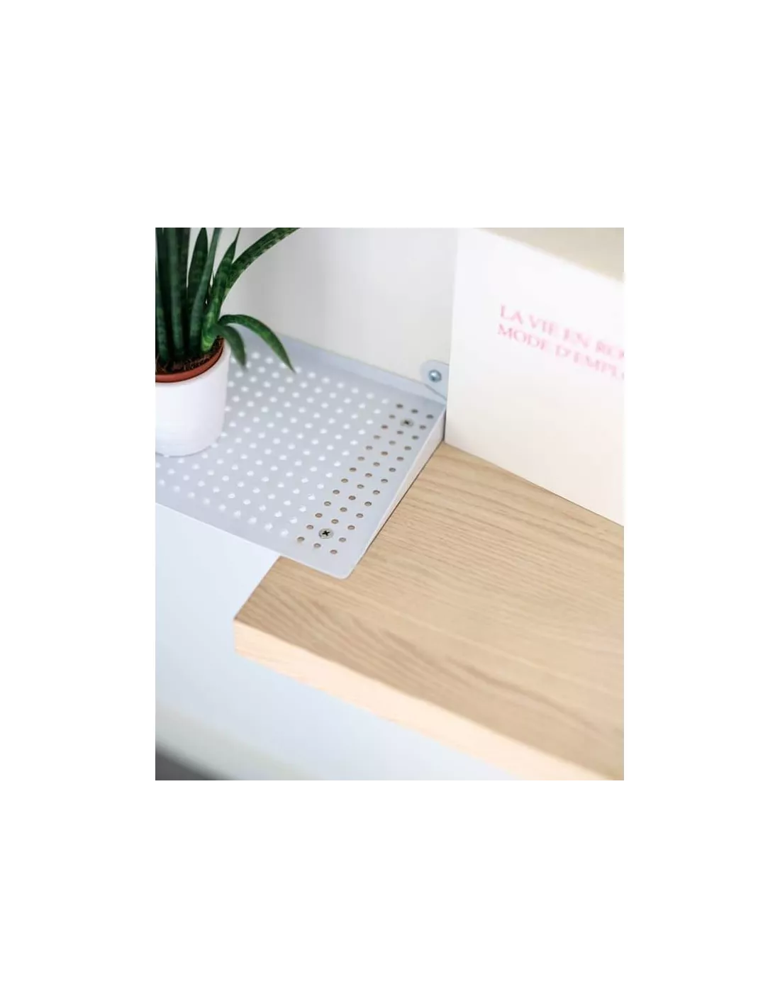 Originale, l’étagère WOUPS Swabdesign, en bois naturel et métal blanc, donne l’illusion que vos livres sont en lévitation contre le mur, suspendus dans les airs comme par magie ! Très déco, cette étagère propose un superbe mélange de bois de frêne et de métal laqué perforé. Très pratique, la partie métallique peut se monter à gauche ou à droite ce qui permet de l’utiliser comme table de chevet des deux côtés d’un lit. De par son esthétique épurée et son intemporalité, elle s’intègrera aussi bien dans les intérieurs modernes que plus classiques.