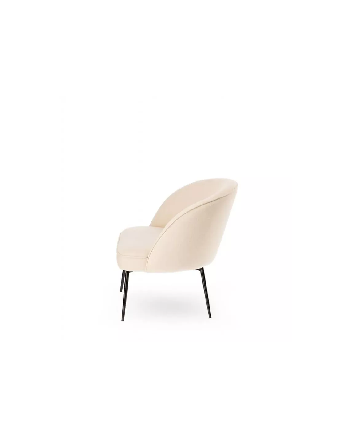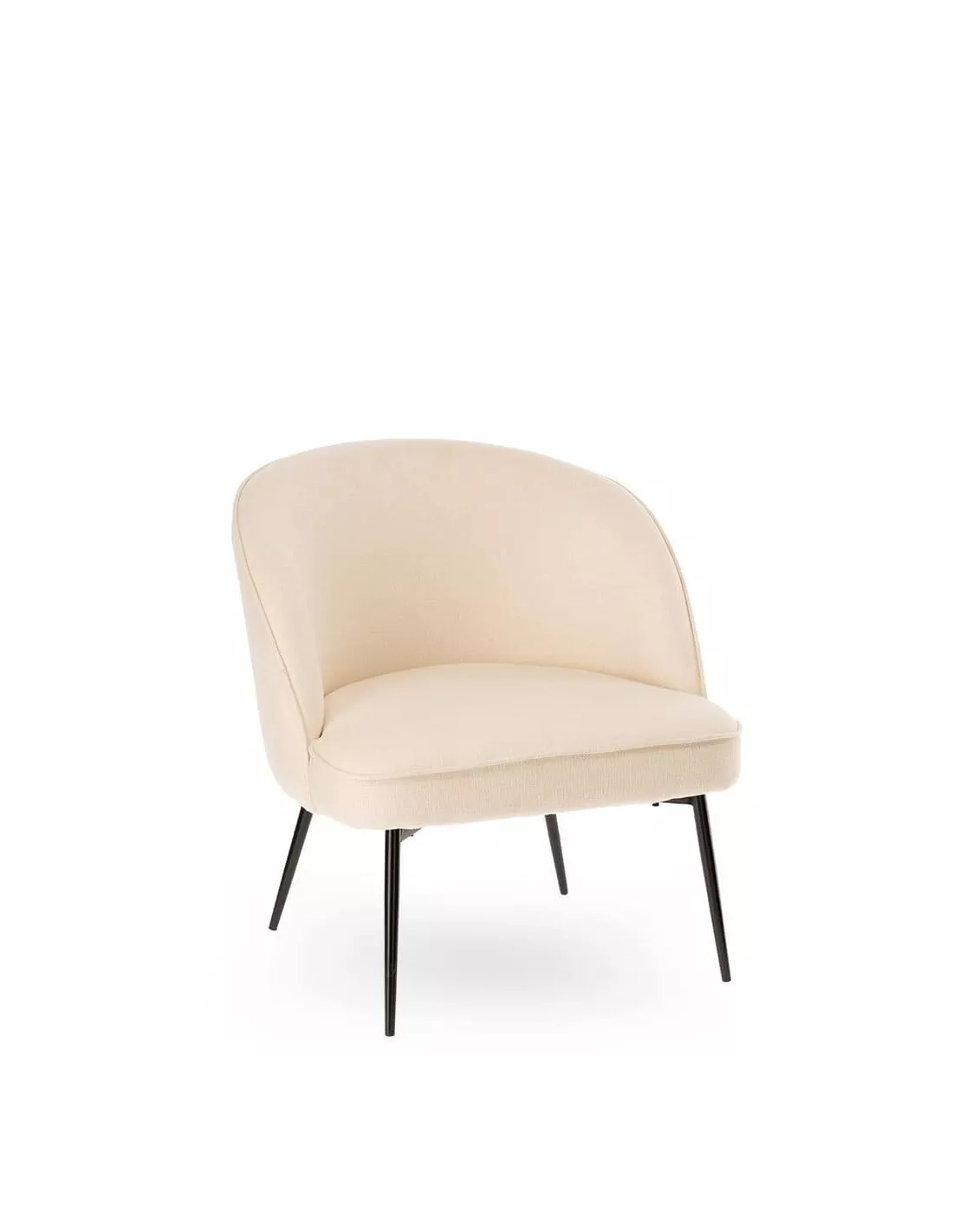 Fauteuil rond crème en tissu très résistant et pieds en métal noir, Déco en Ligne