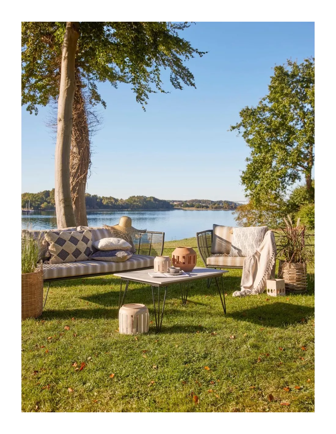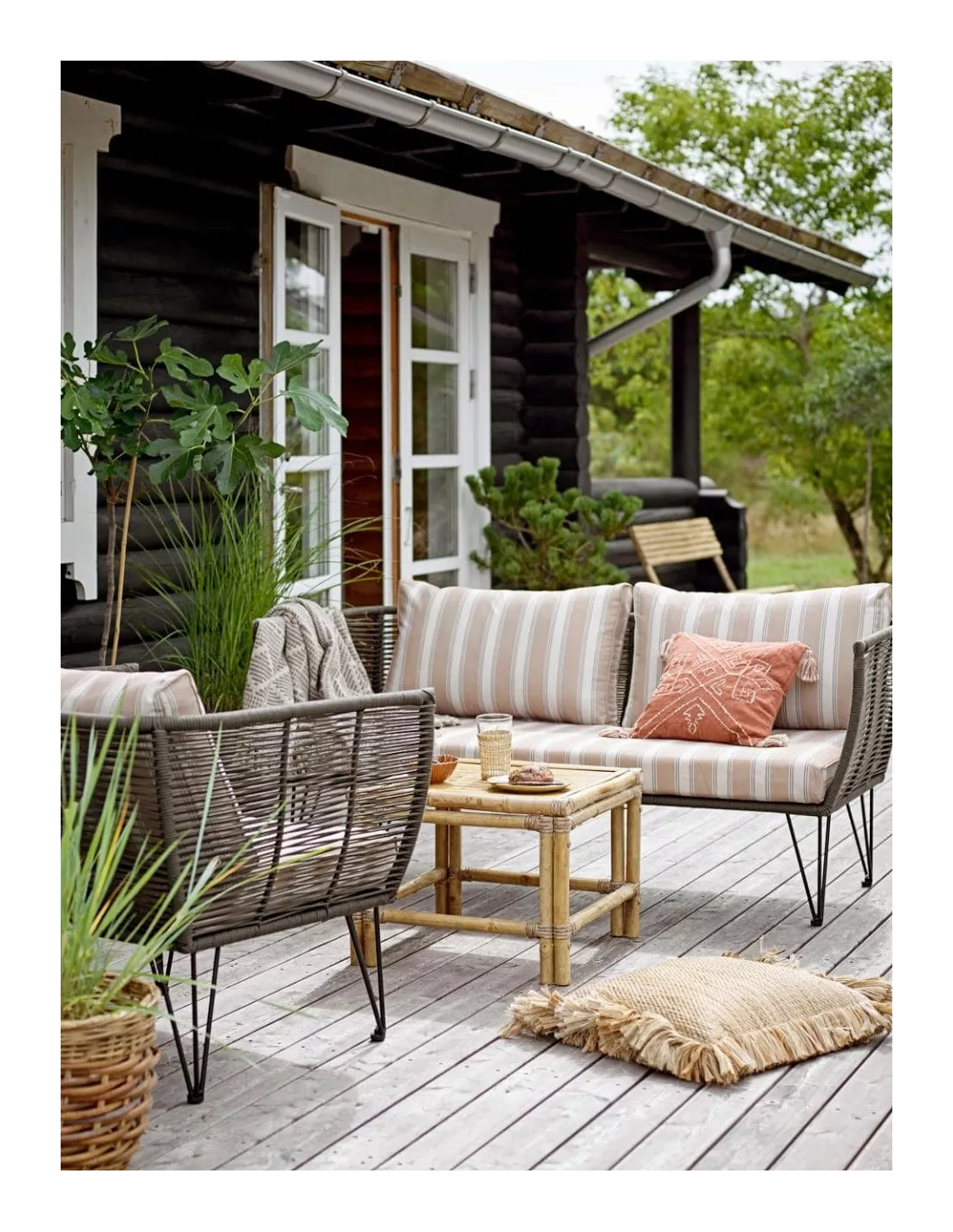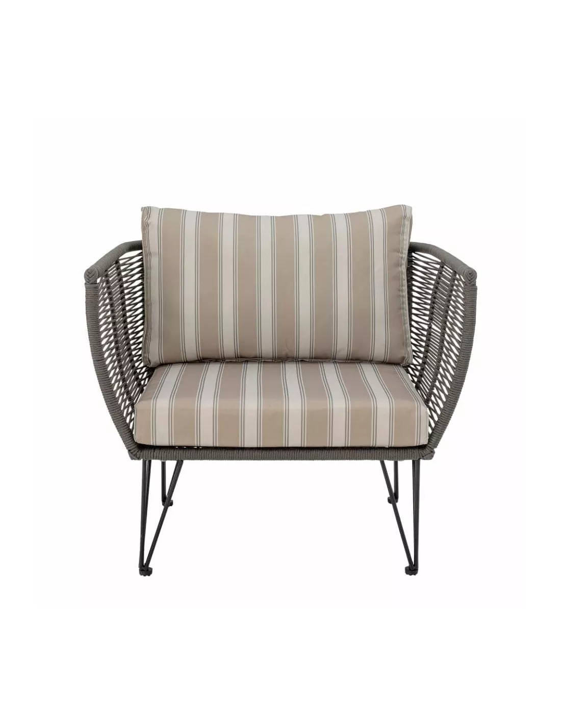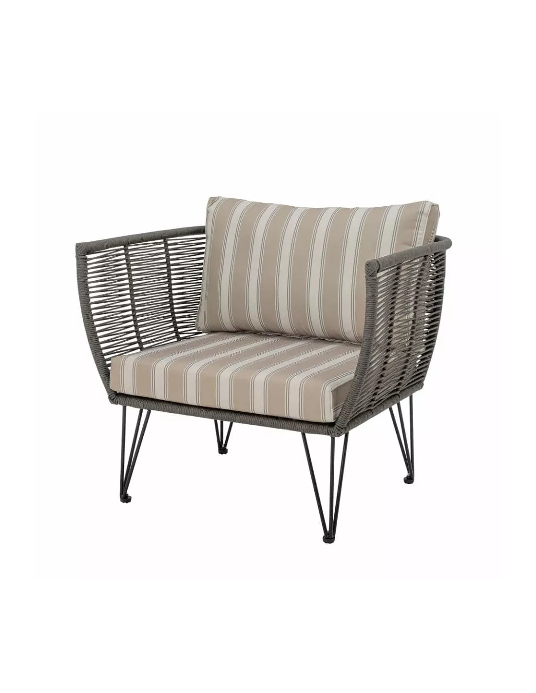 Apportez une ambiance de détente chic à votre extérieur ou à votre intérieur ! Détendez-vous dans ce très beau fauteuil extérieur Mundo de la Maison Bloomingville. Ses coussins rayés déperlant sont dotés d’une housse en polyester lavable en machine à 30°. Ce fauteuil d’extérieur est réalisé en métal noir enduit de poudre avec corde en polyester noir tissée à la main. Tenir le fauteuil à l’écart de la lumière directe du soleil permettra de prolonger la couleur du tissu et la durabilité du fauteuil.