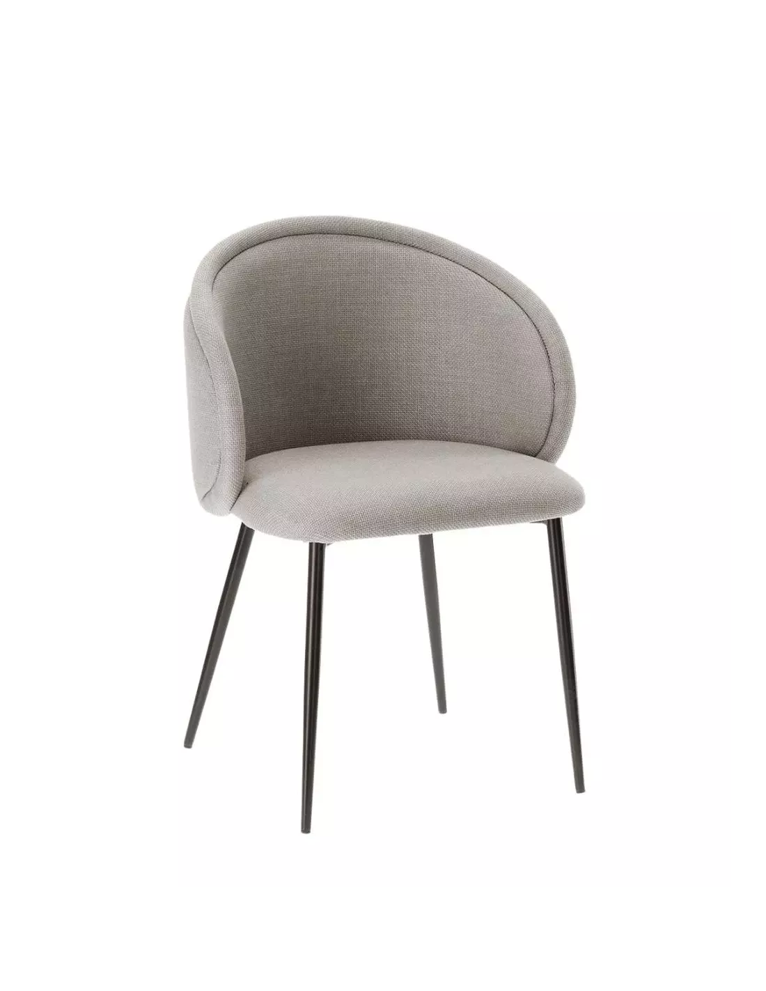 Le choix du tissu légèrement chiné dans des tons de gris en fait une pièce intemporelle, parfaite pour s’intégrer à tous les styles décoratifs. Le piètement en métal noir apporte la stabilité nécessaire à ce fauteuil, tandis que la couture soulignant la partie supérieure lui confère tout son caractère.