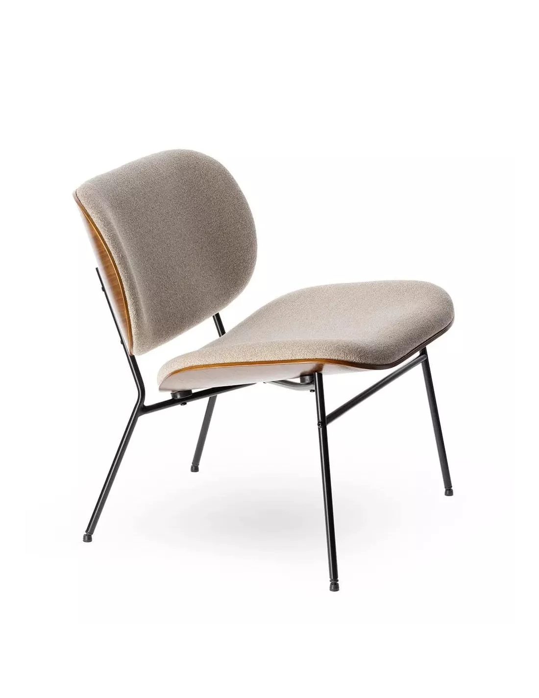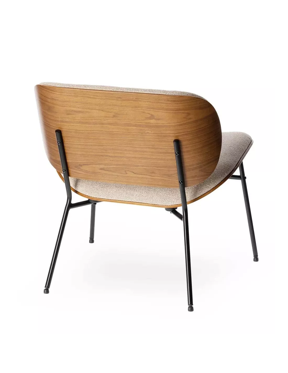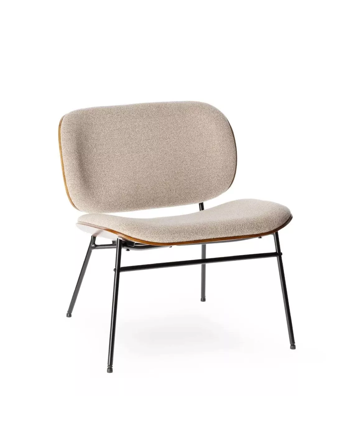 Fauteuil beige/brun scandinave en tissu et bois doté de pieds en métal, Déco en Ligne