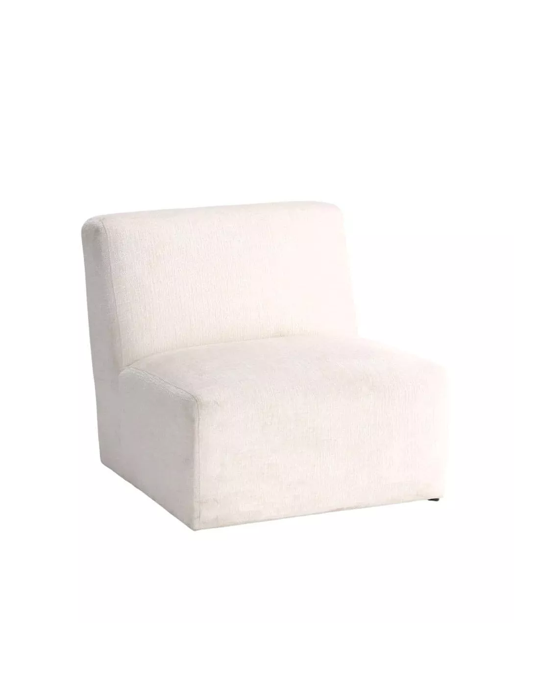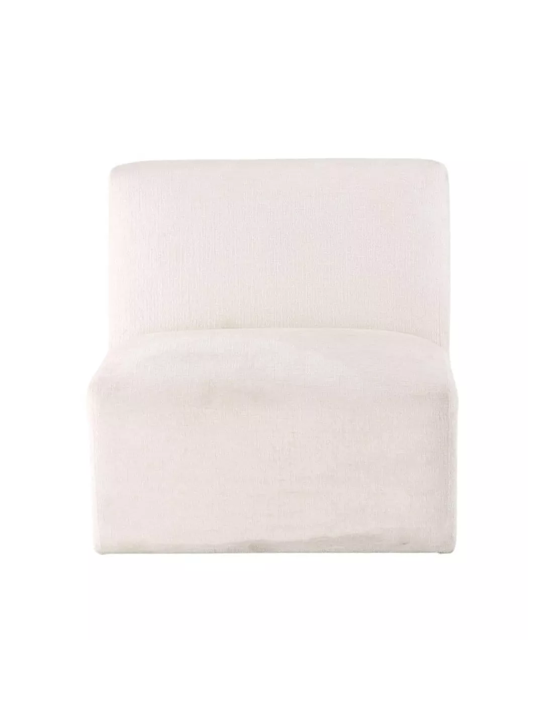 Fauteuil Melles blanc au design minimaliste contemporain large et confortable qui se mariera avec tous les styles de décoration. Son dossier très légèrement incliné confère à ce siège un confort tout en apportant du maintien. Son assise moelleuse est recouverte d’un tissu effet velours de couleur blanc 100% polyester, pour un confort accru.