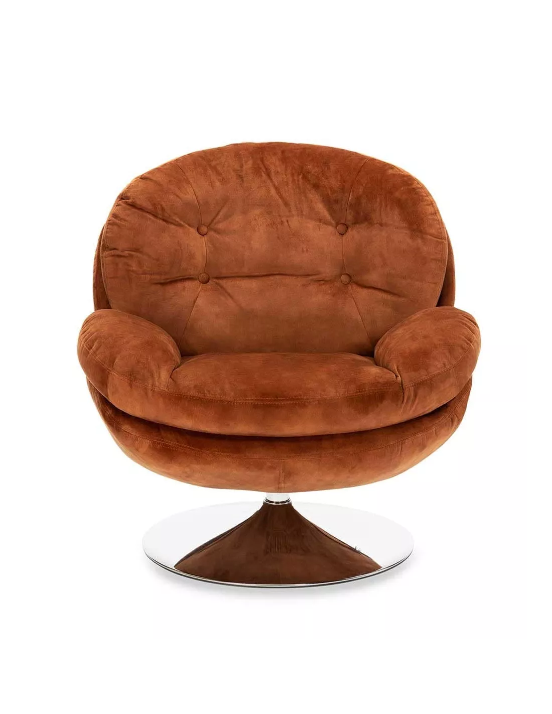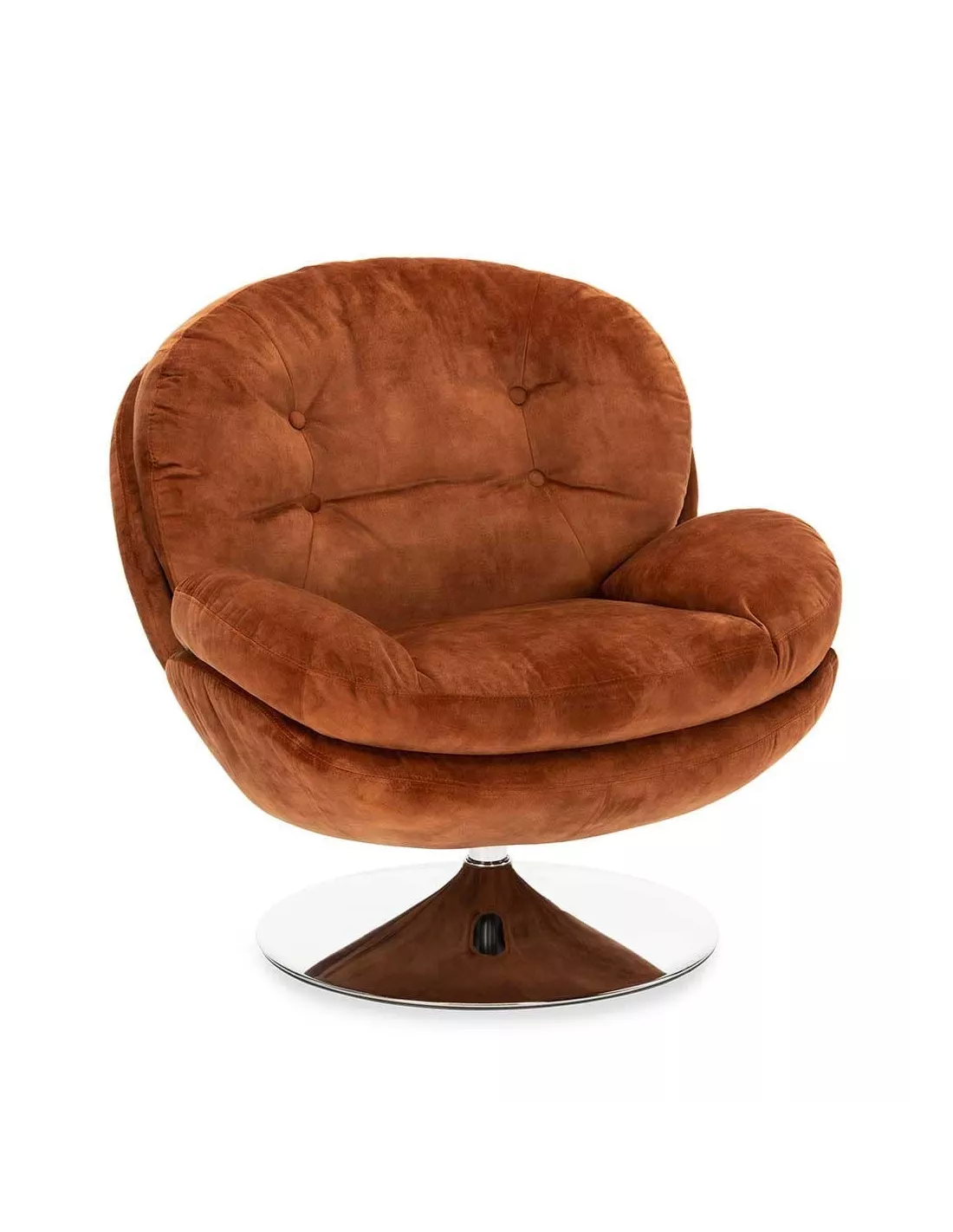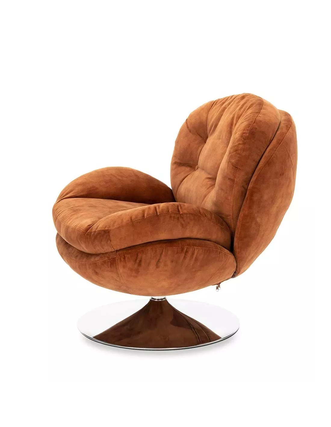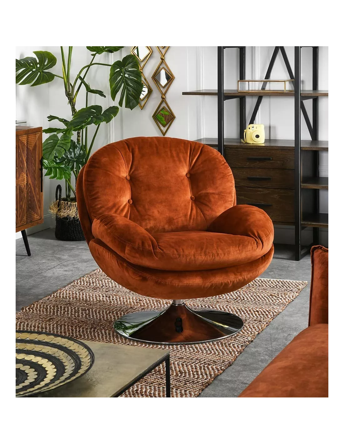 Fauteuil pivotant design en velours ocre et piètement argent, Déco en Ligne