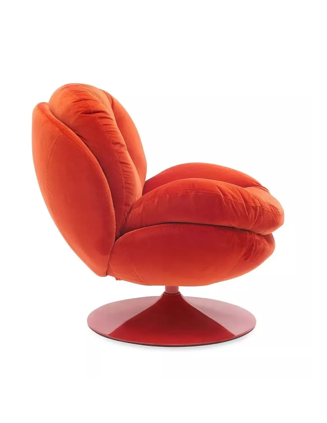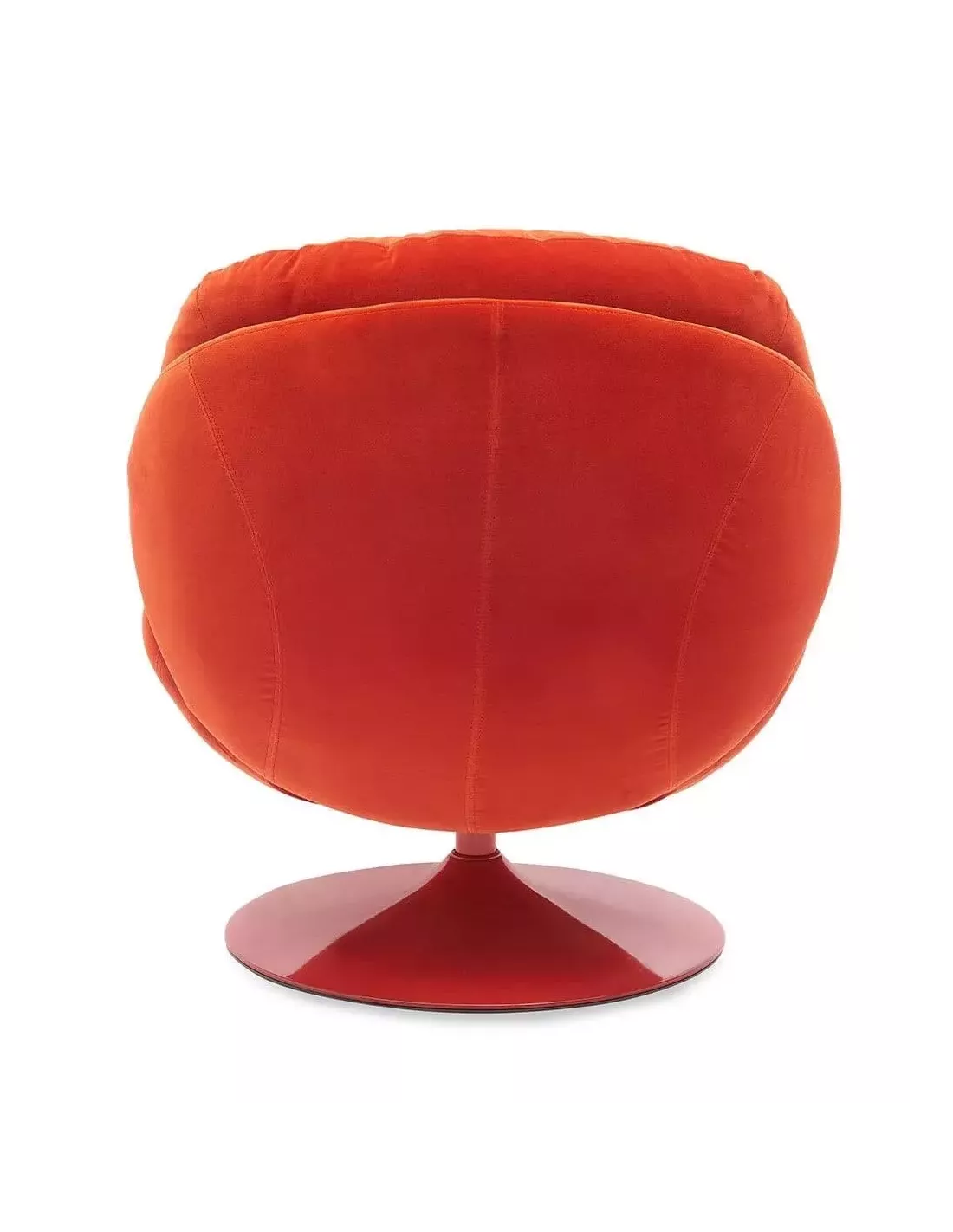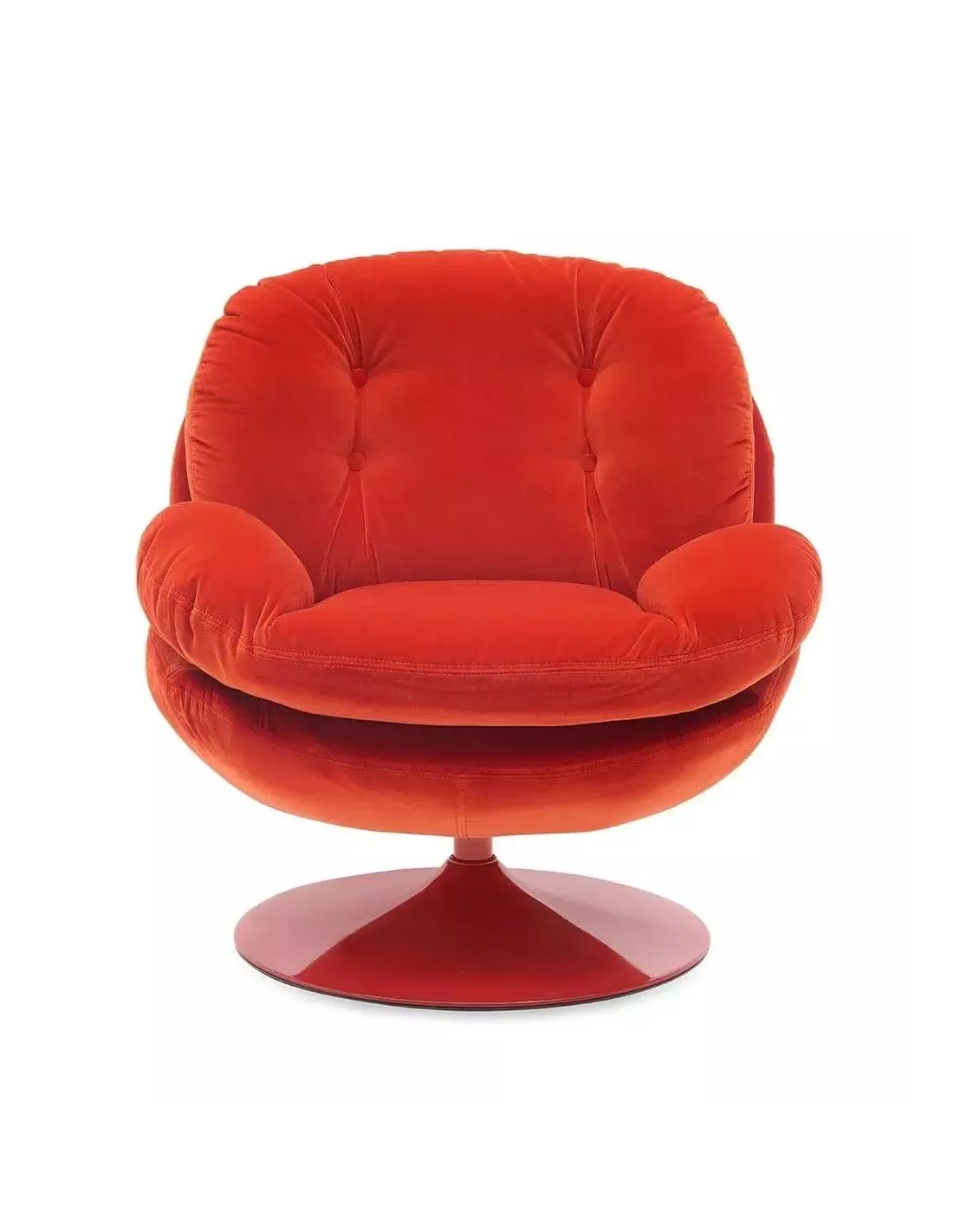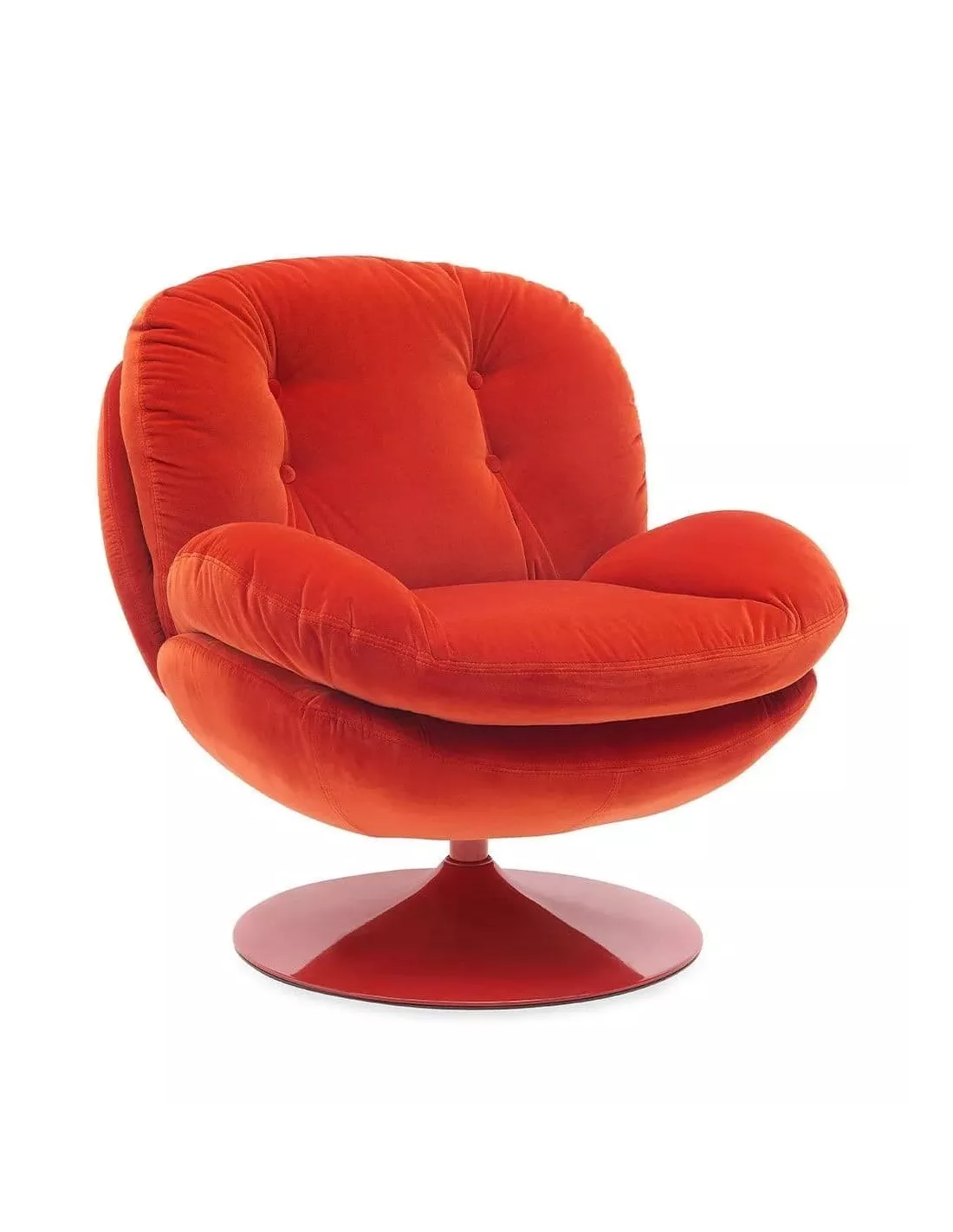 Gros fauteuil pivotant rouge seventies en velours, Déco en Ligne