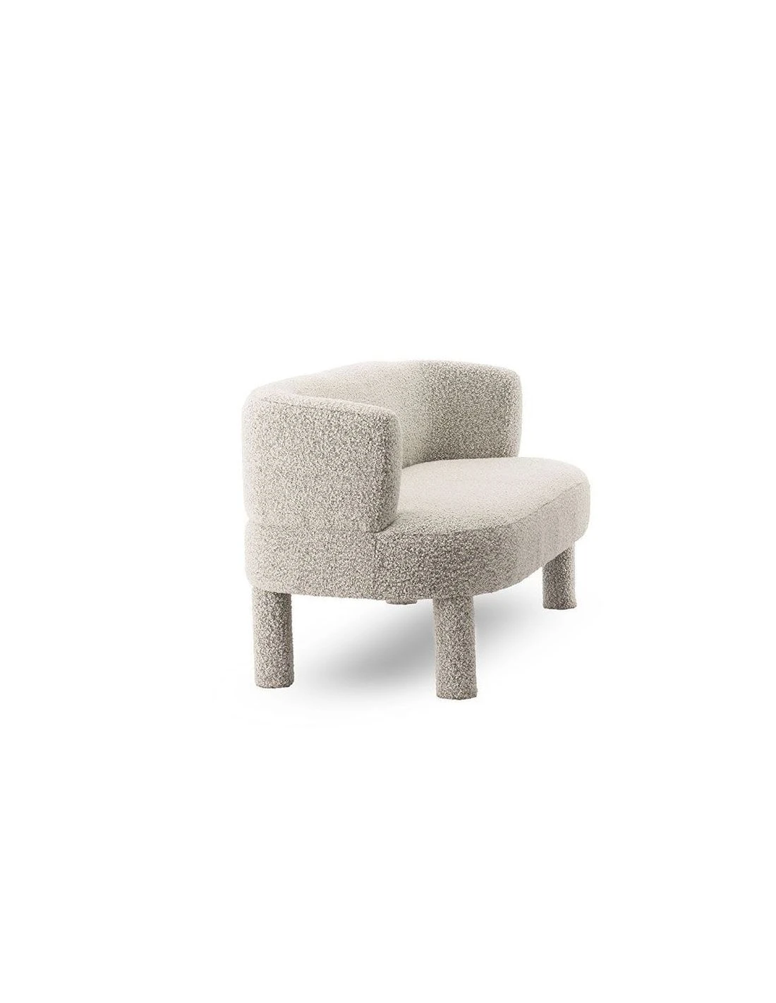 Le fauteuil Reisa Gris Chiné apportera une touche sophistiquée à votre espace de vie. Conçu avec des lignes douces et harmonieuses, ce fauteuil recouvert d’un joli tissu bouclettes, se distingue par son design légèrement arrondi. L’absence de coussin renforce le côté minimaliste de ce fauteuil Reisa Gris Chiné, mettant en valeur la pureté de ses formes.