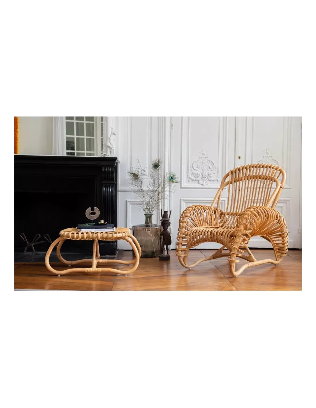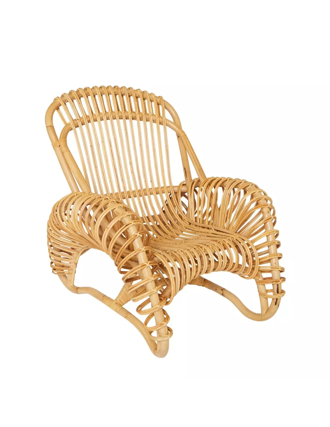 Inspirée des lignes des années 50 et 60, le fauteuil Boucle en rotin naturel est pourtant une vraie création contemporaine de Maxence Boisseau et Nelson Alves, du studio AT-ONCE, pour KOK Maison. A la façon des mannequins en osier d’autrefois, l’artisan rotinier courbe à la main chaque « boucle » pour la placer à intervalles réguliers et faire naître un profil. Ce fauteuil en rotin est si confortable qu’on peut l’utiliser sans coussin. Pour un accueil plus douillet, vous pourrez disposer un plaid ou une couverture.