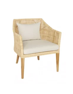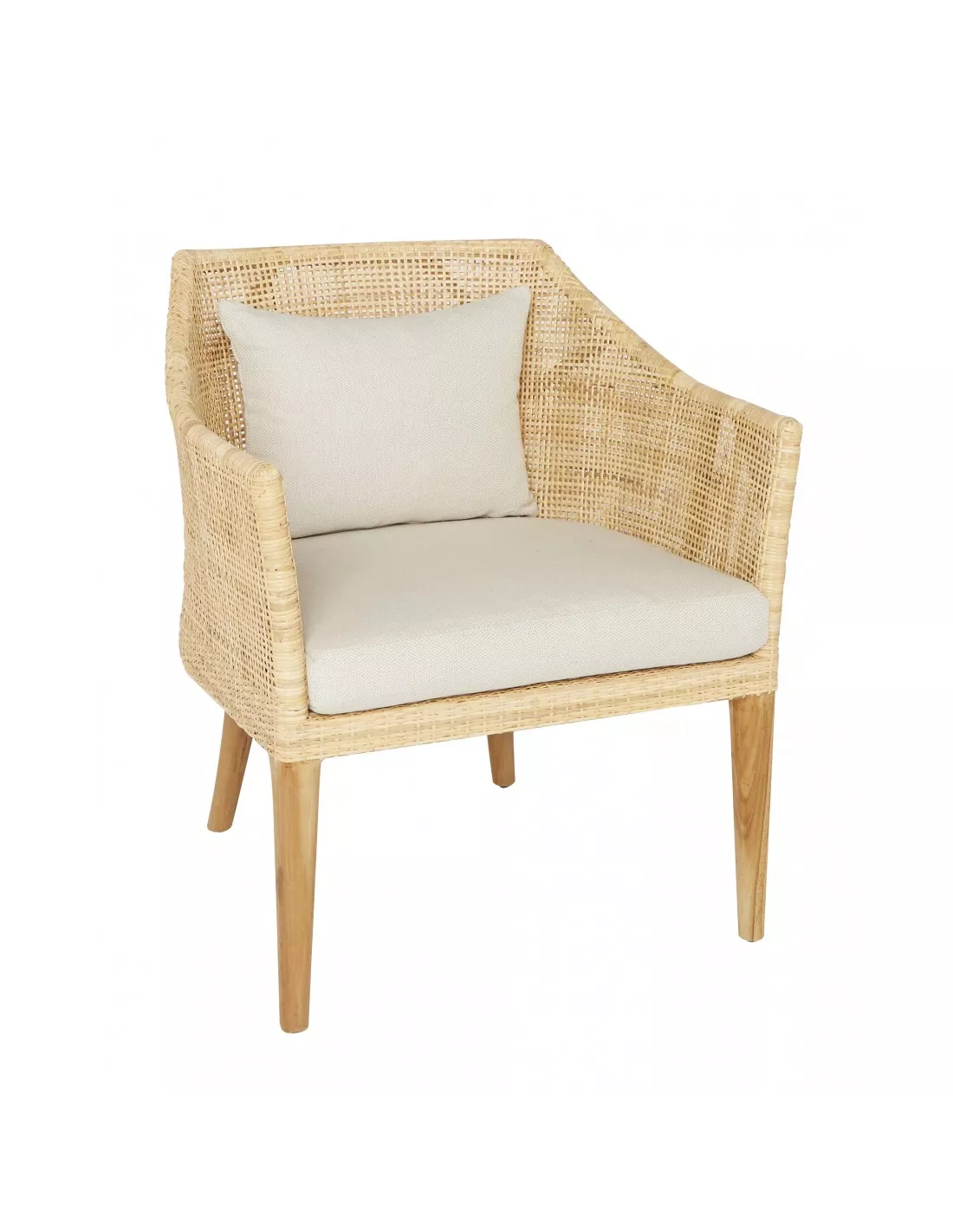 Robustesse rassurante et noblesse d’une structure en teck naturel au raffinement d’un cannage ajouré en éclisse de rotin Saigon entièrement fait main, caractérisent le fauteuil cannage rotin. Ce fauteuil de table cannage rotin KOK Maison est l’un des seuls sur le marché au cannage aussi fin. Les coussins d’assise et de dossier apportent un véritable confort et un bon soutien du dos.