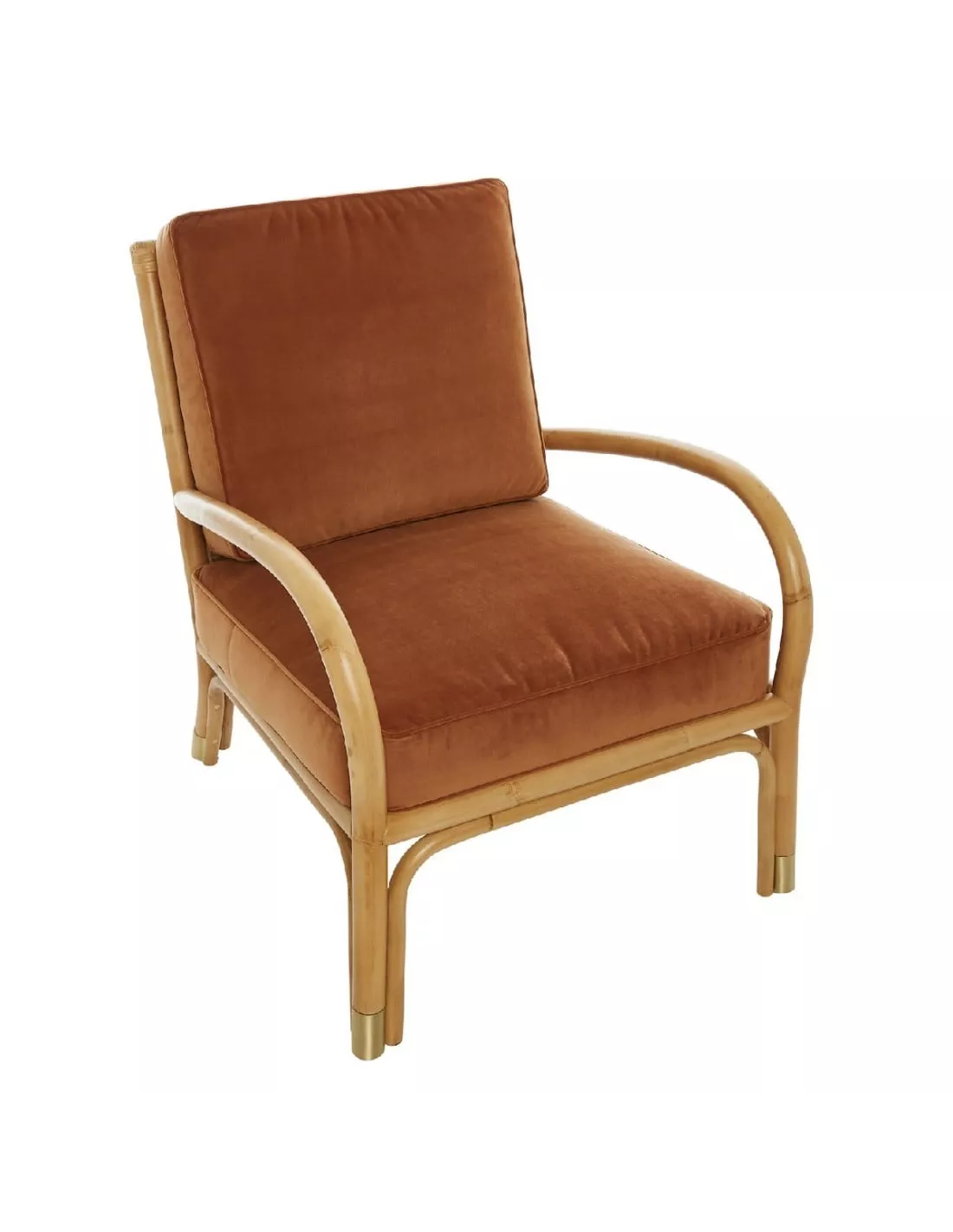 Inspiré des lignes du rotin des années 70-80, le fauteuil rotin/velours Riviera en reprend les codes graphiques caractéristiques : rotin au diamètre généreux, formes simples, dimensions compactes, finitions haut de gamme : confort exceptionnel des coussins Bultex made in France, tissu velours déhoussable, double cannage en garniture des dossiers, cabochons en laiton…