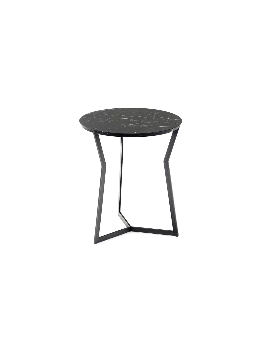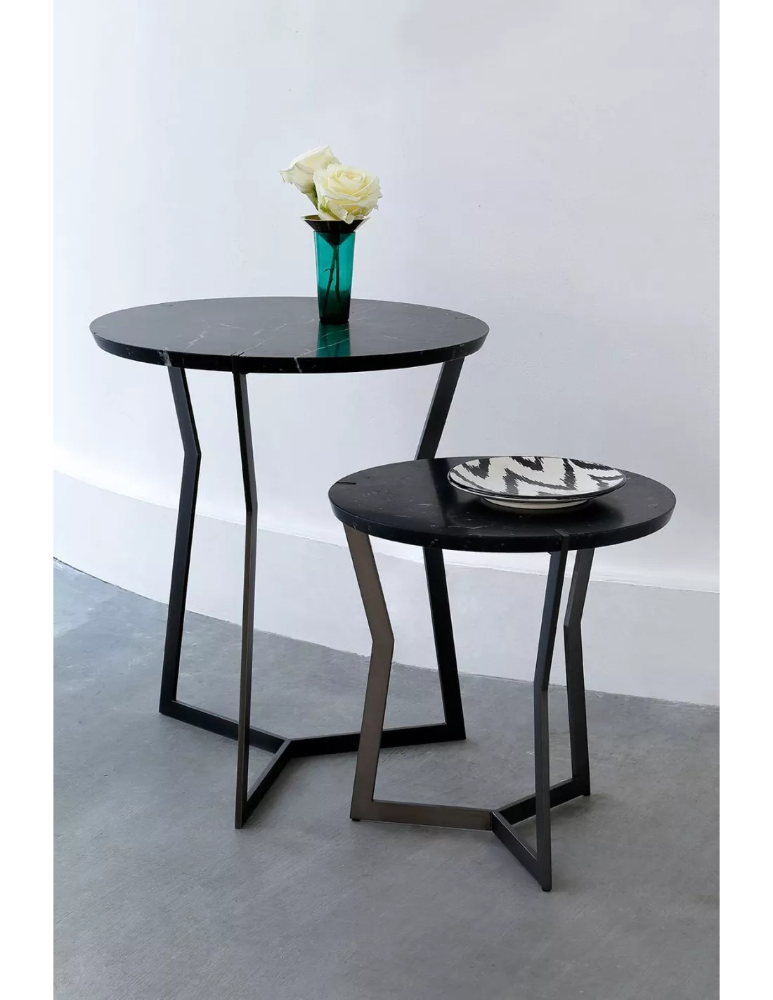 Guéridon design marbre noir Marquina et pieds noirs Ø50, Coédition