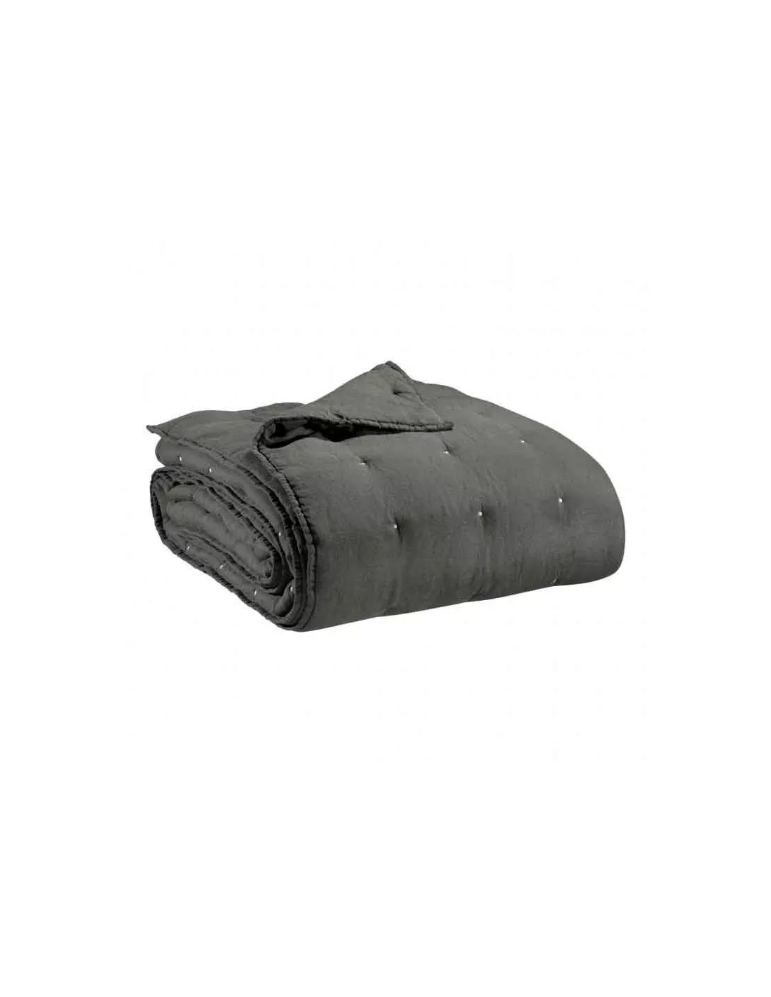 Jeté de lit en lin anthracite finition points de broderie, Vivaraise