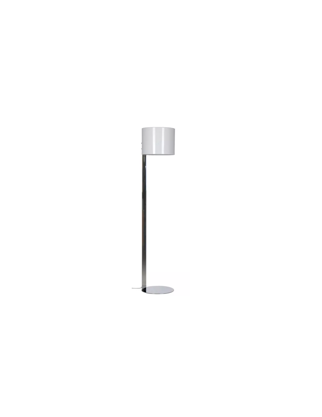 Ce lampadaire est en chrome et son abat-jour satiné blanc.