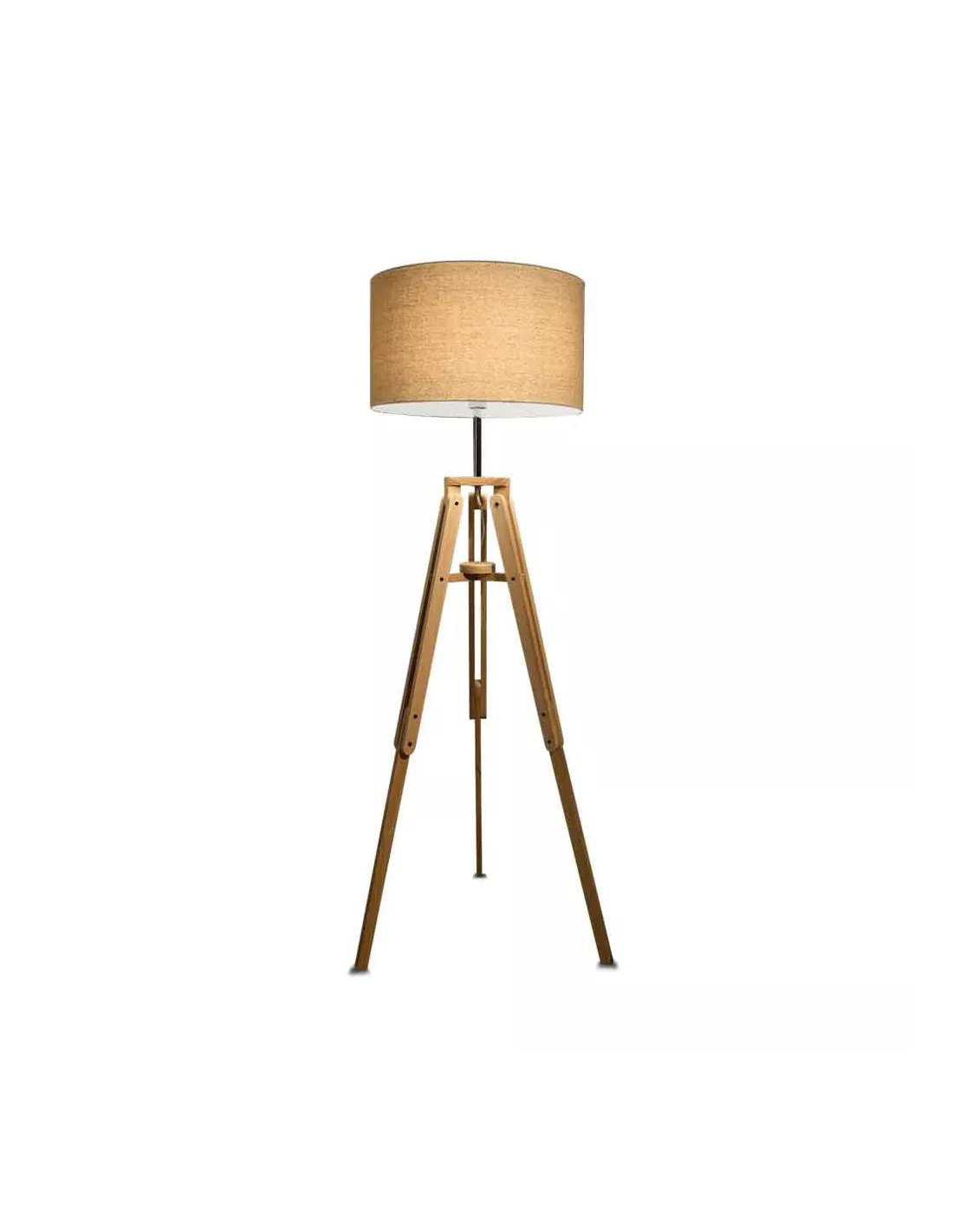 Lampadaire 3 pieds en bois naturel et abat-jour beige en tissu, Ideal Lux