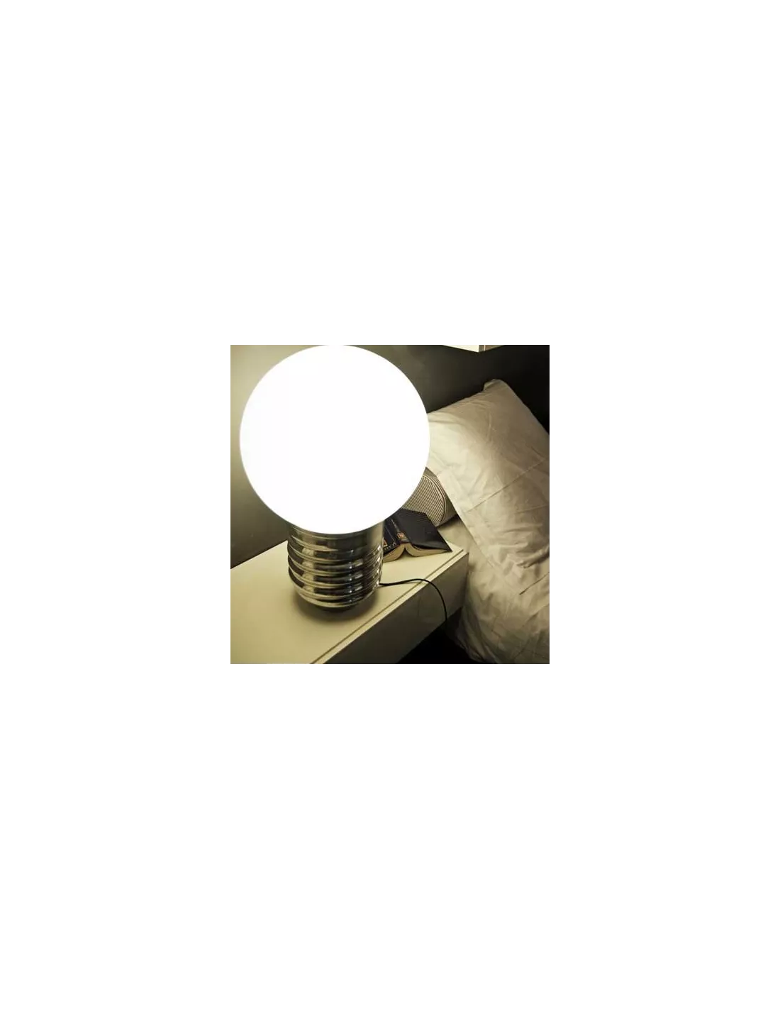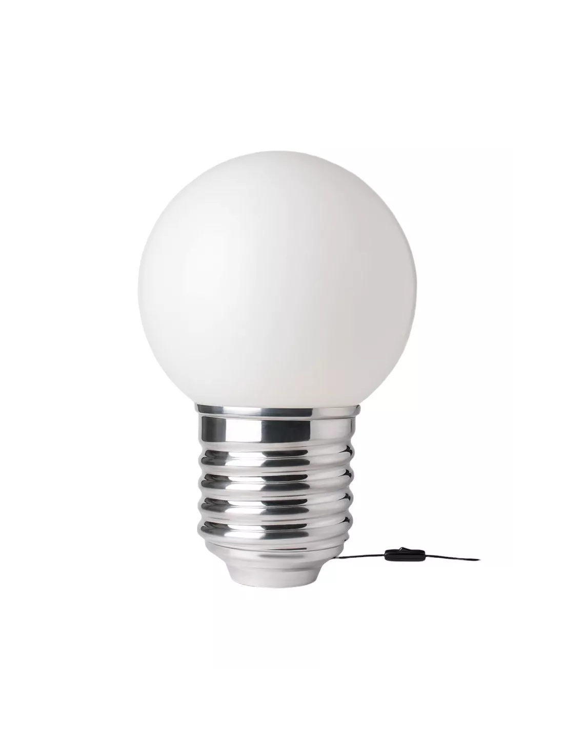 Concept minimaliste librement adapté par Hervé Isle de Beauchaine, la lampe design Basic Aluminium Hisle est une réplique gigantesque mais fidèle de l’ancienne ampoule E27 en hommage à Edison. Disponible en deux tailles et en version “In” ou “Out”. Facile d’utilisation avec son globe qui se dévisse du socle. Efficace grâce à son globe blanc en polyéthylène, qui diffuse une lumière non éblouissante. Allongée dans un salon, nue sur une terrasse, couchée dans l’herbe, suspendue entre deux arbres ou sous un patio ?